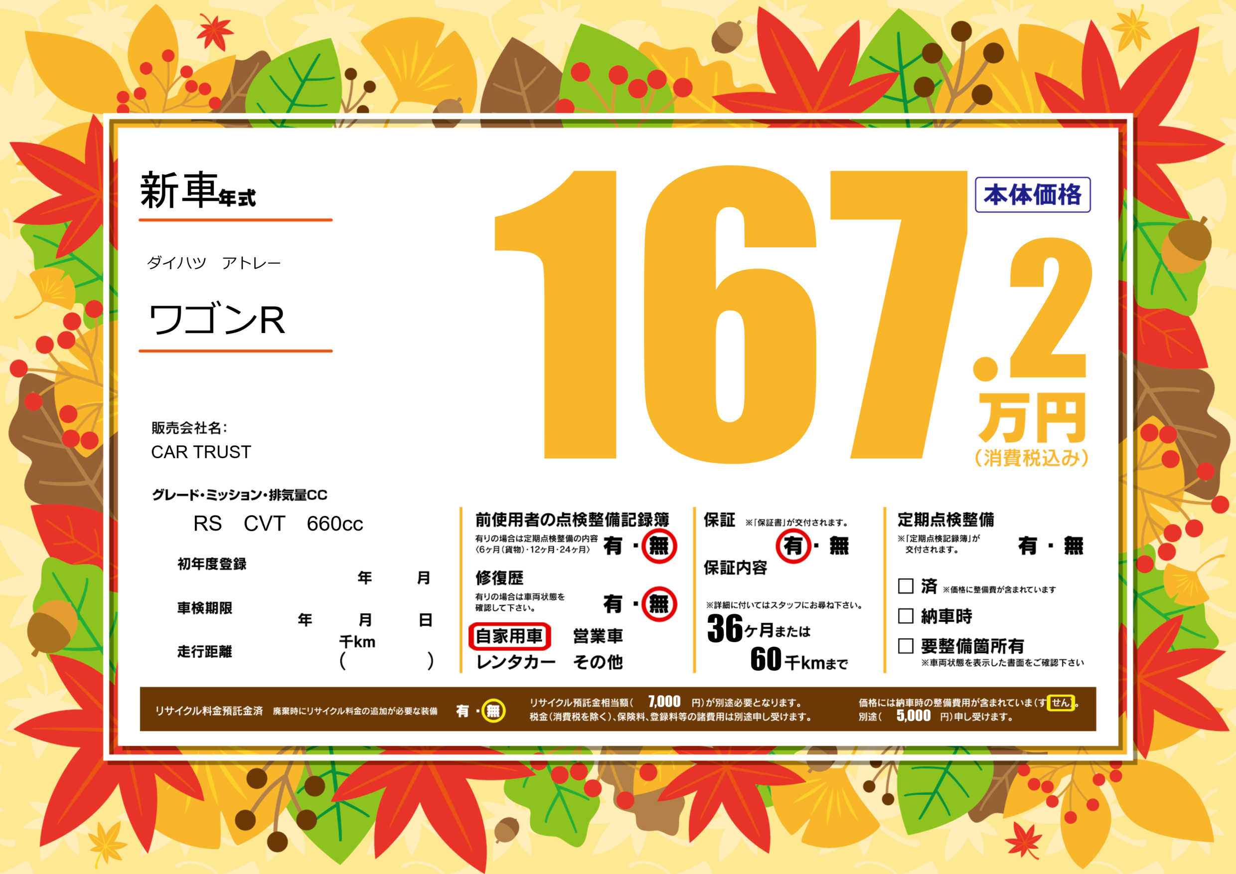 | 車名 | ダイハツ アトレー | グレード ミッション 排気量 |