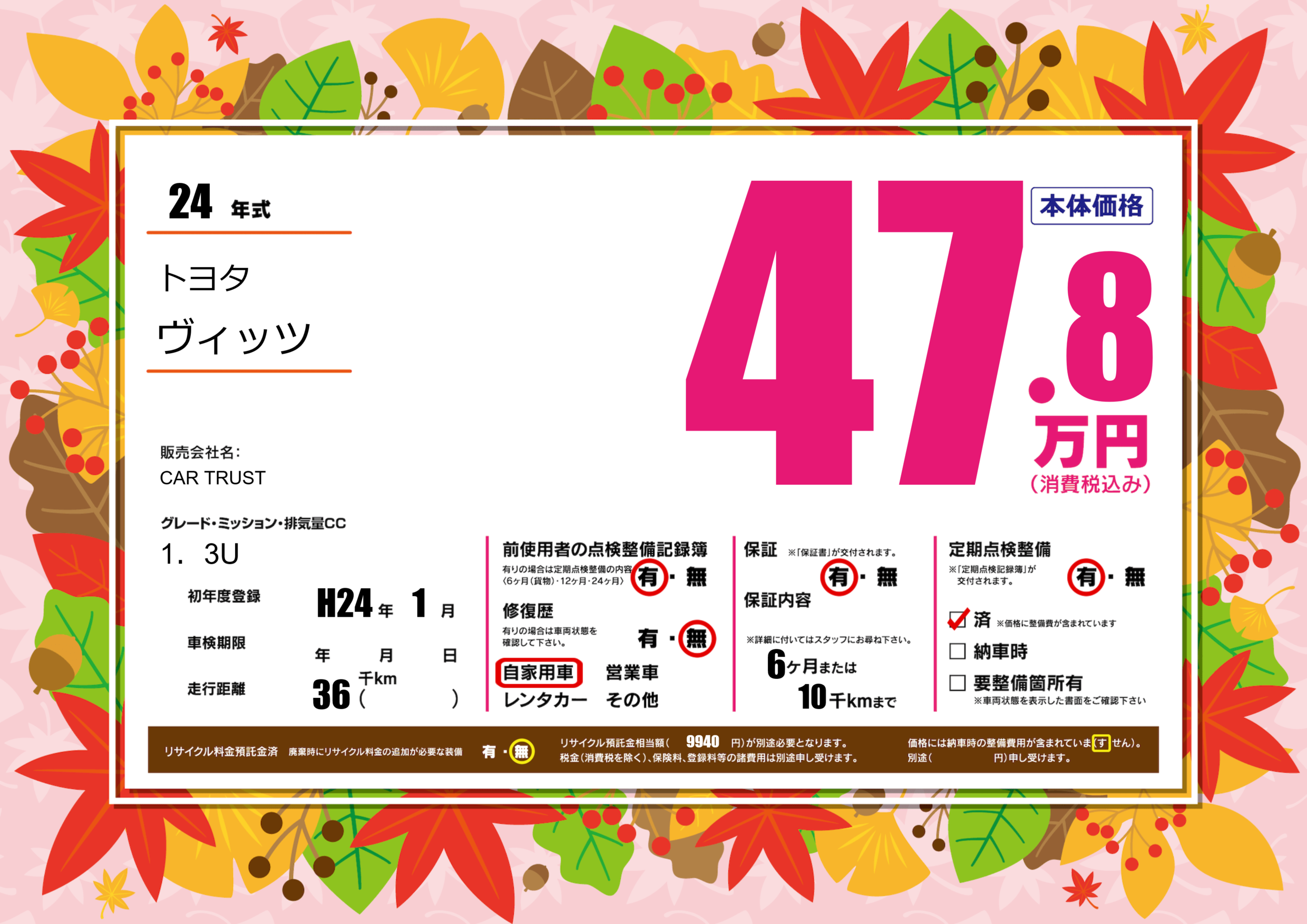 | 定期点検整備 | 定期点検整備あり 定期点検整備済み | ||