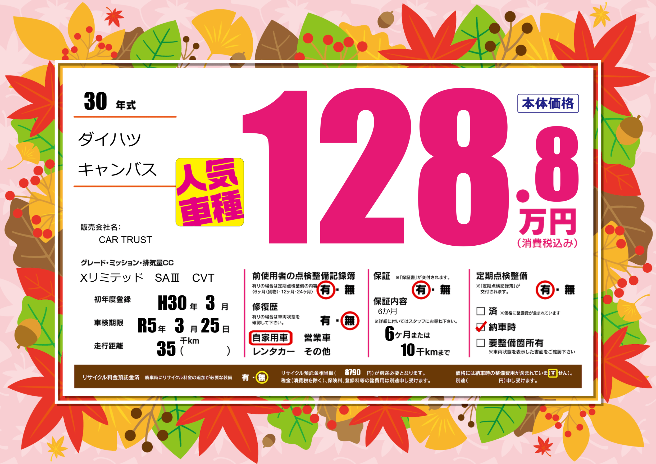 | 車検制限 | R5年 3月 25日 | ||