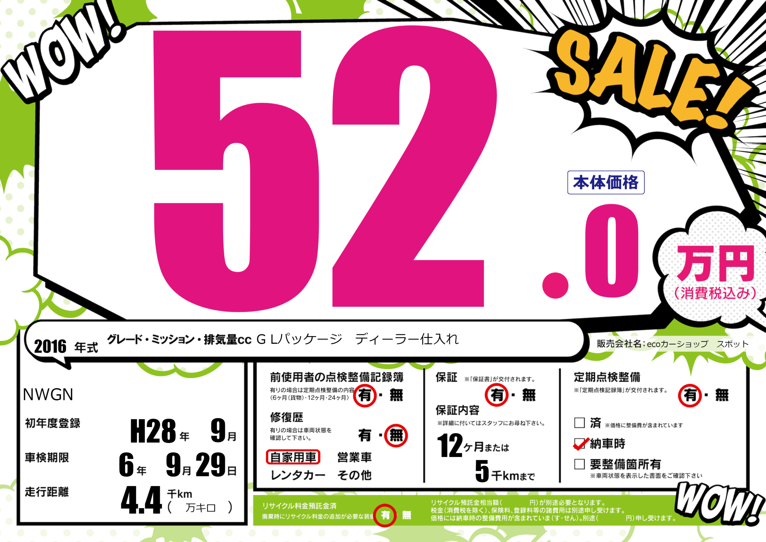 | 車名 | NWGN | グレード ミッション 排気量 |