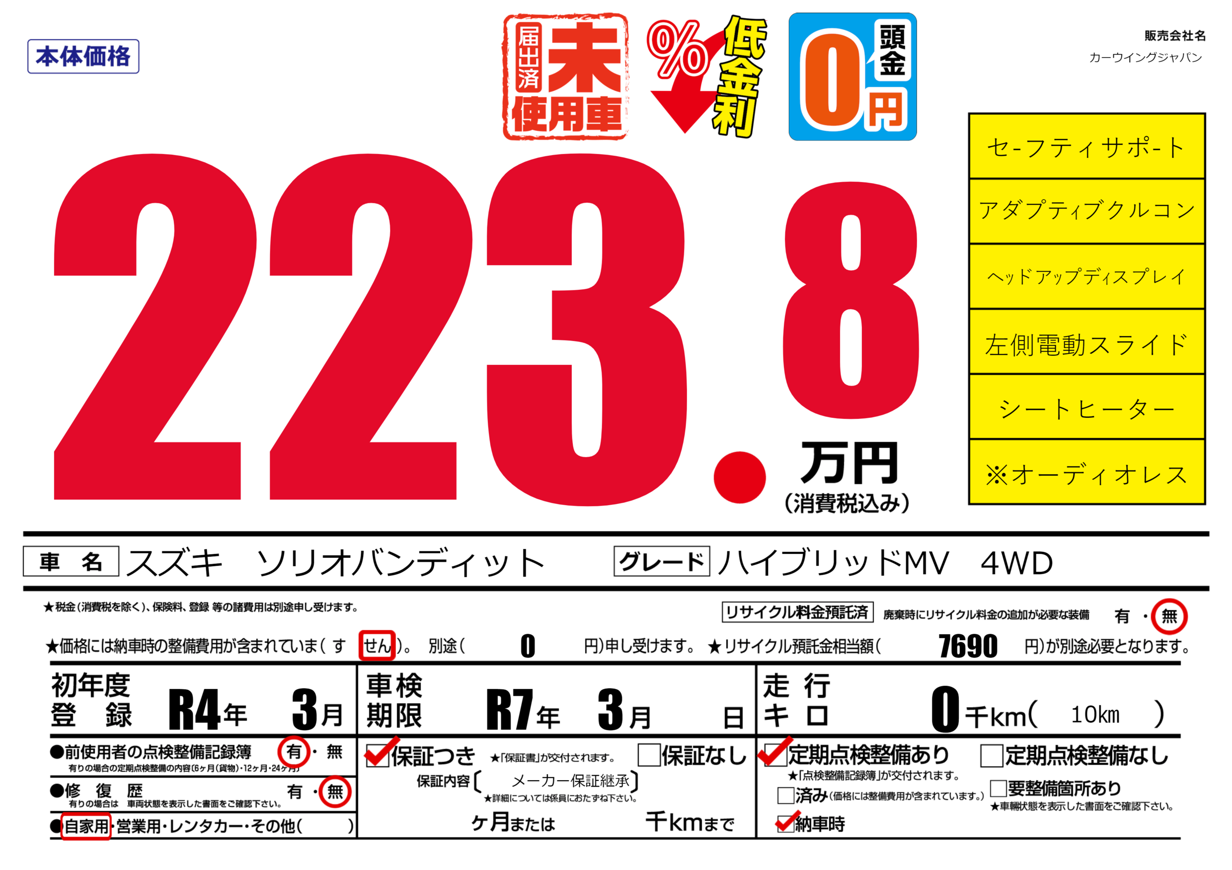 | 走行キロ | - | 初年度登録 | R4年3月 |