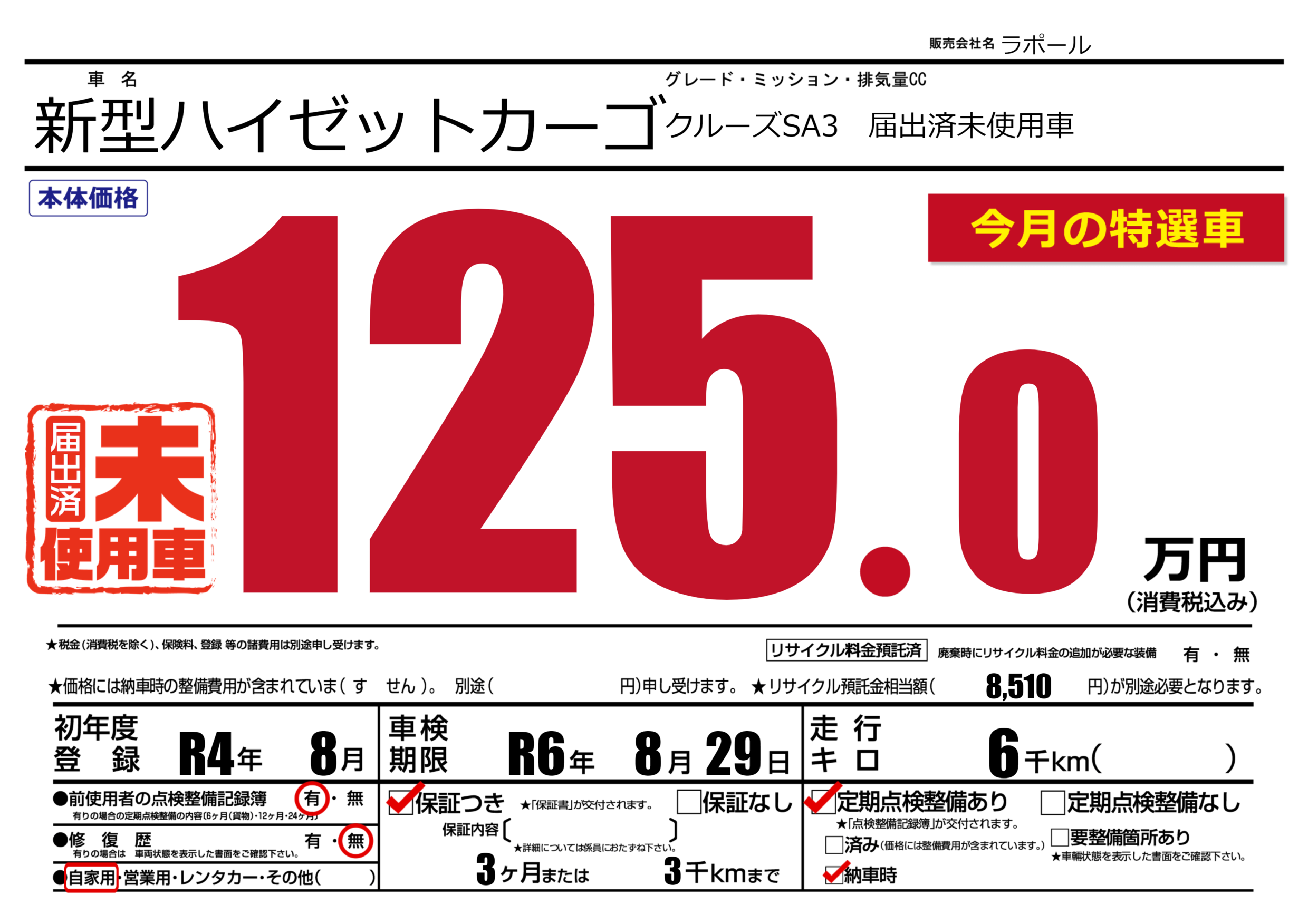 保証付き 保証内容(---) 3ヶ月または(3)千kmまで |