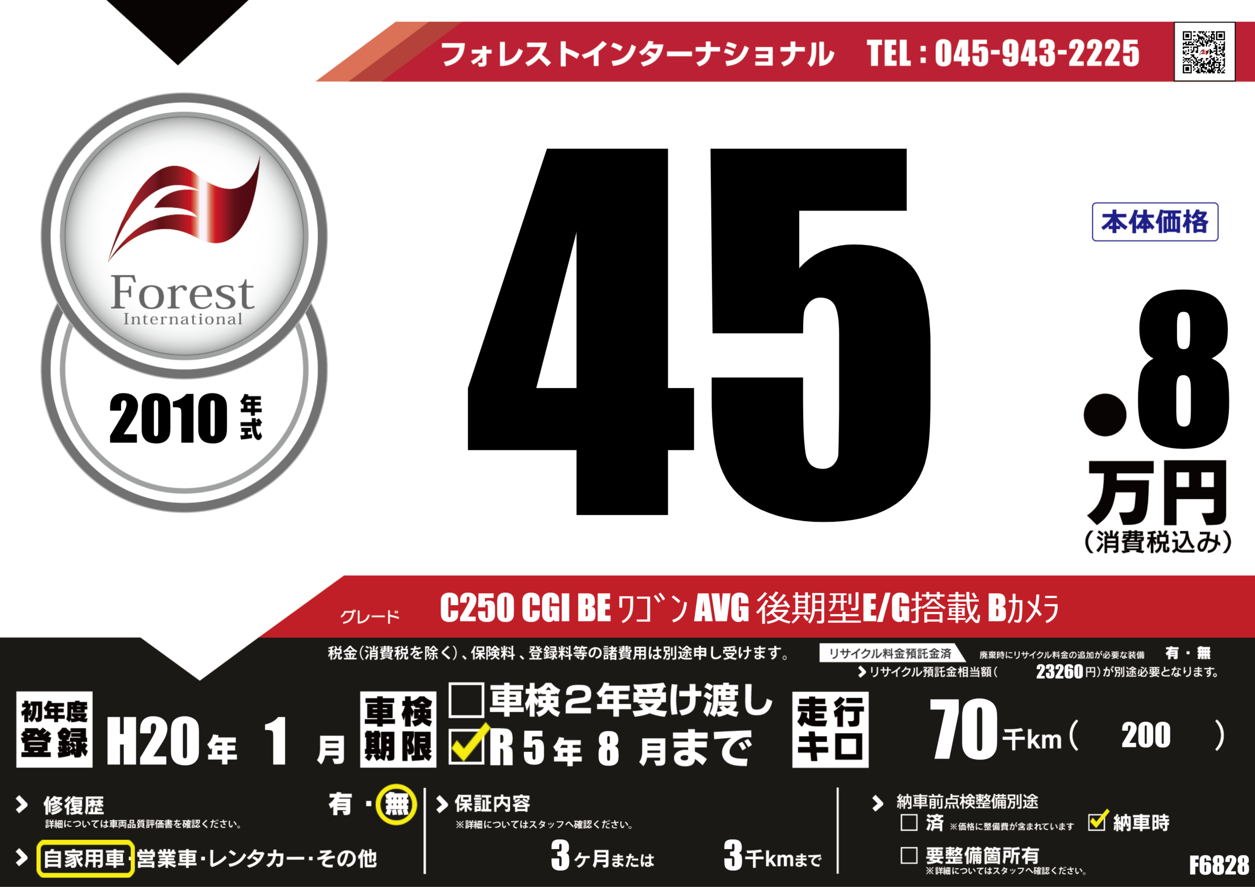 C250 CGI BE ワゴン AVG 後期型E/G搭載 Bカメラ |