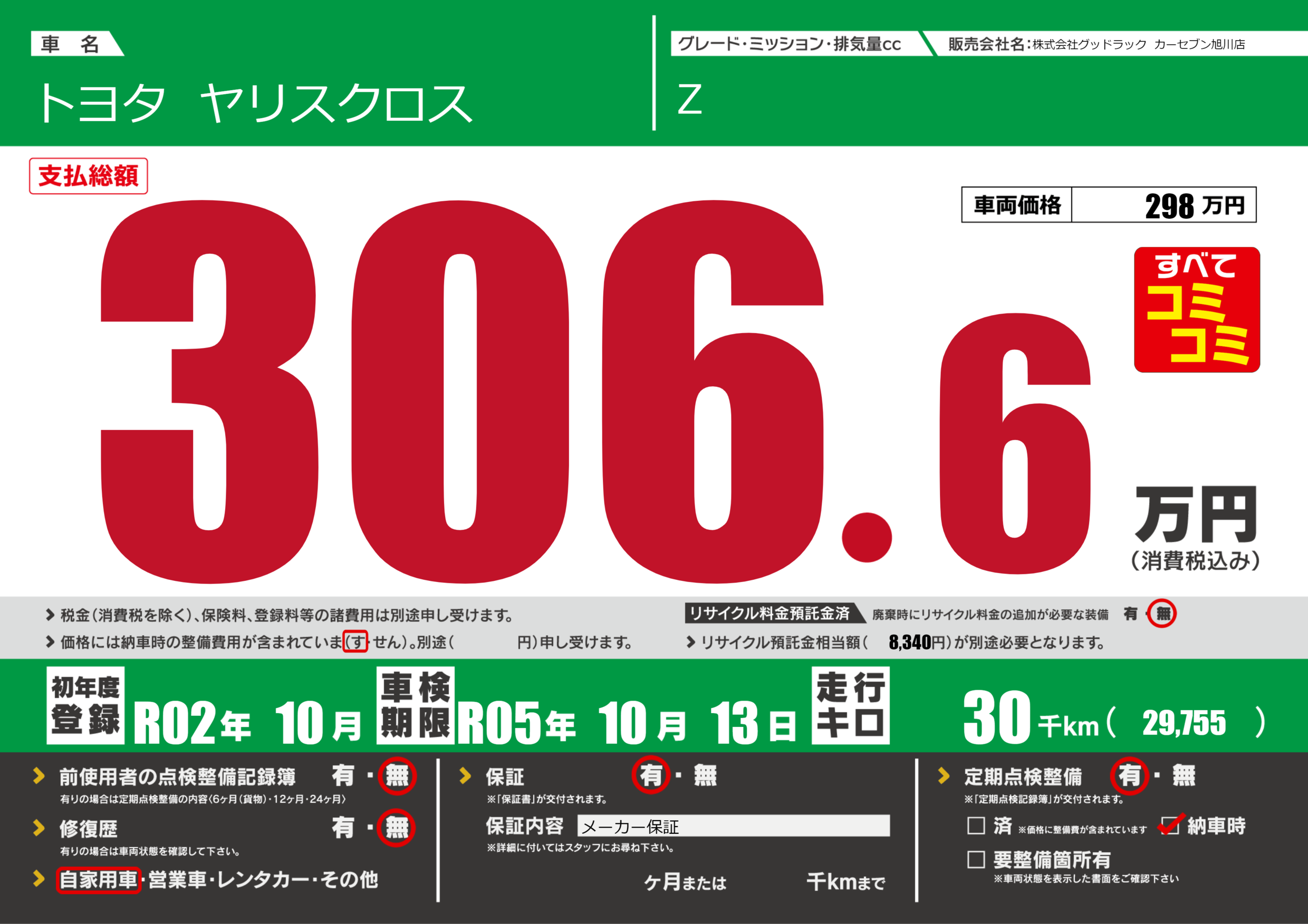 | 走行キロ | 3万km | 初年度登録 | R02年10月 |