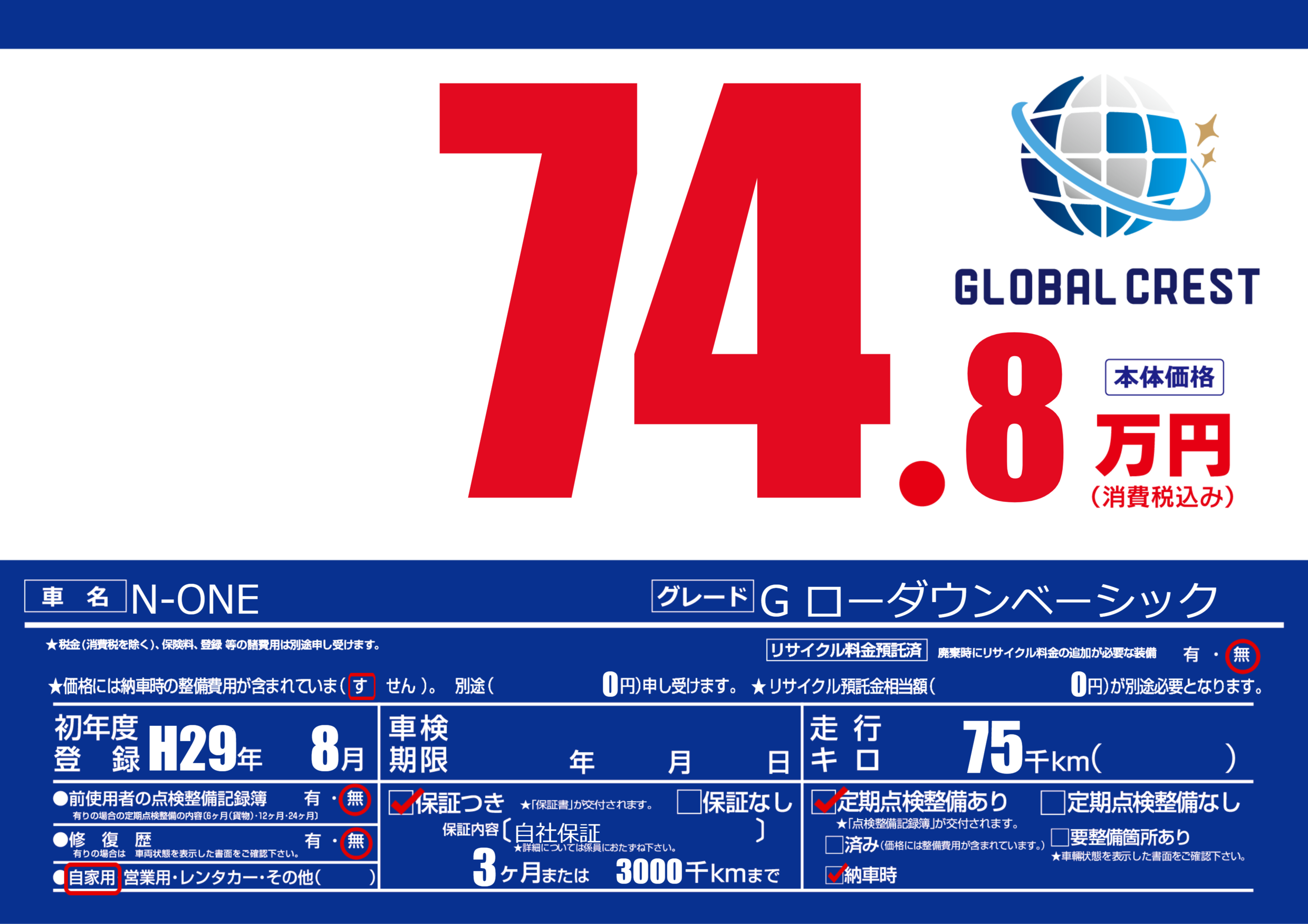 | 車名 | N-ONE | グレード ミッション 排気量 |