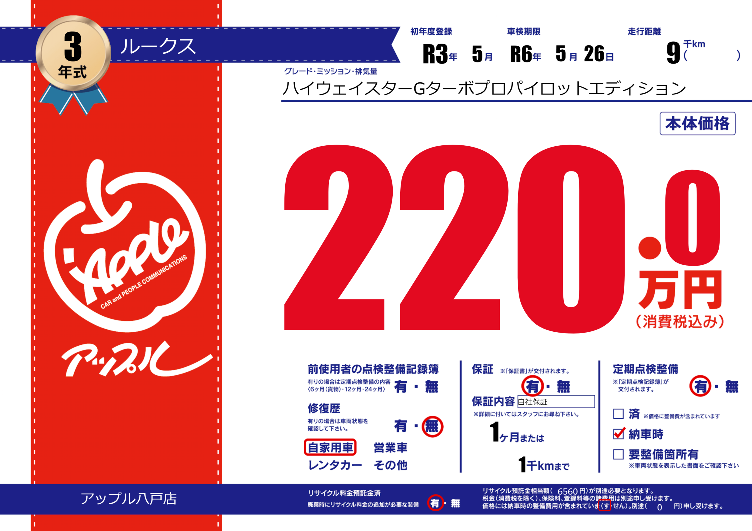 あり | 車検制限 | R6年5月26月 |