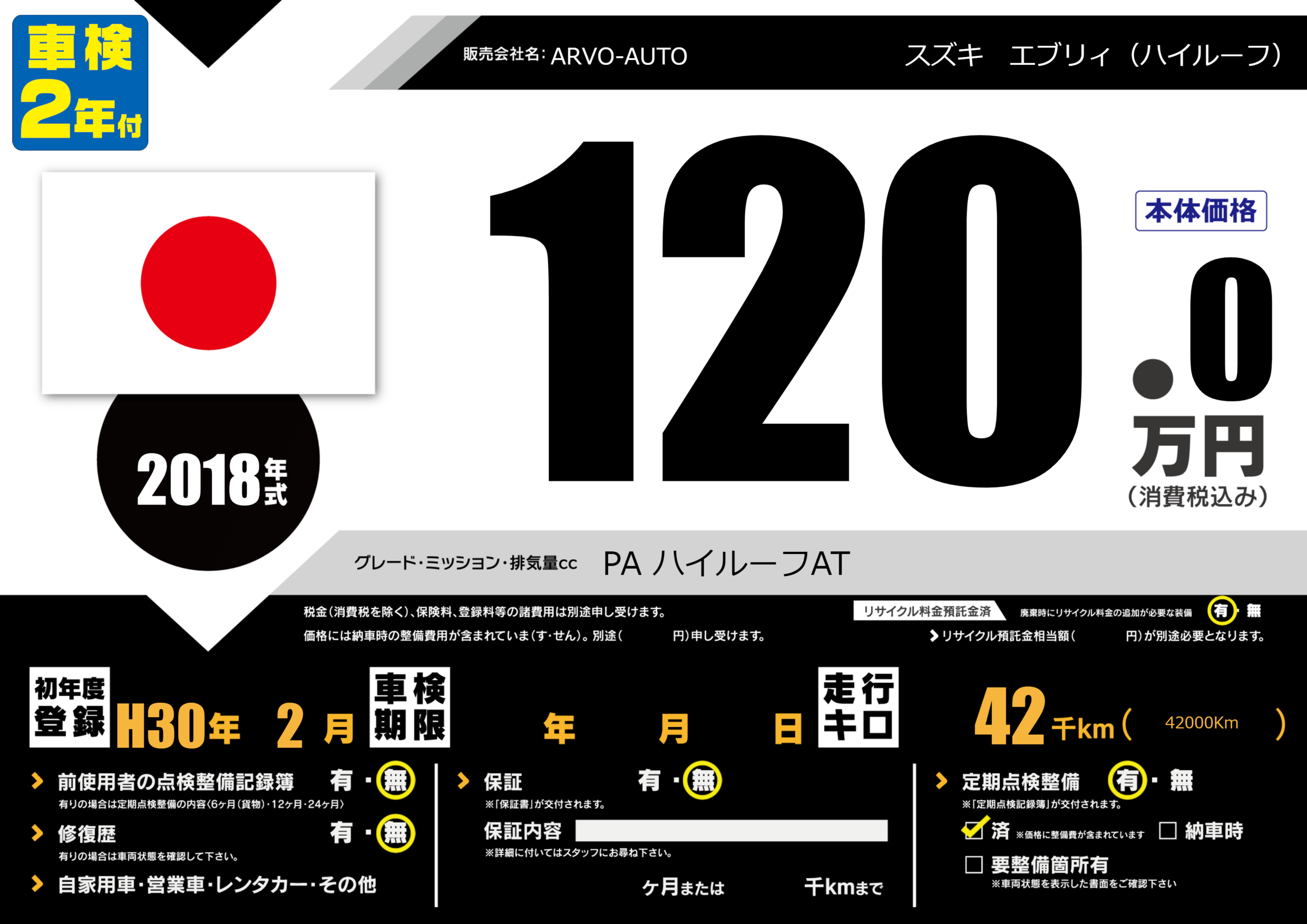 | 定期点検整備 | 定期点検整備あり 定期点検整備済み | ||