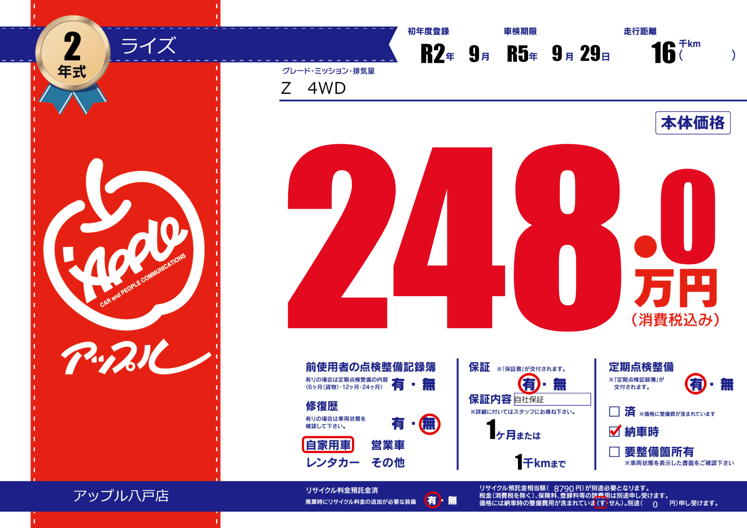 | 定期点検整備 | 定期点検整備あり 納車時あり | ||