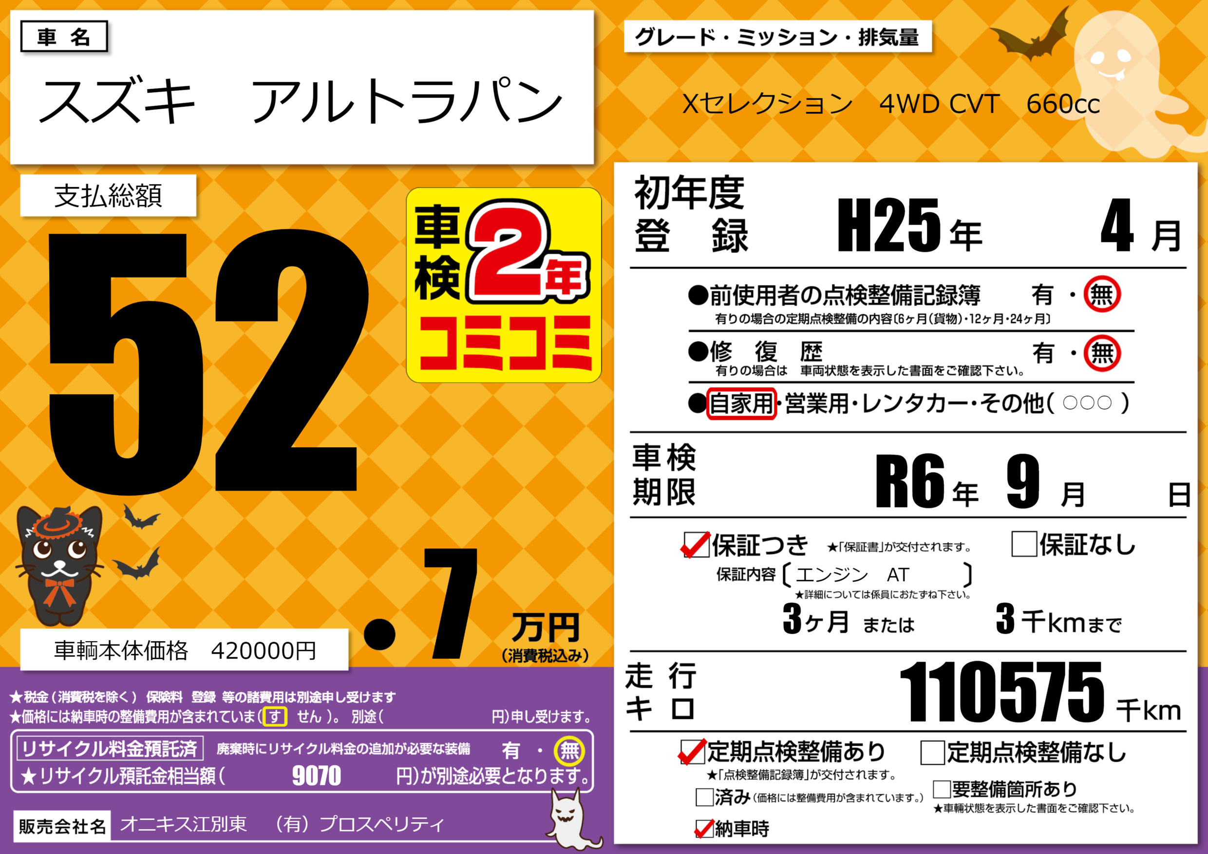 | 定期点検整備 | 定期点検整備あり 納車時あり | ||