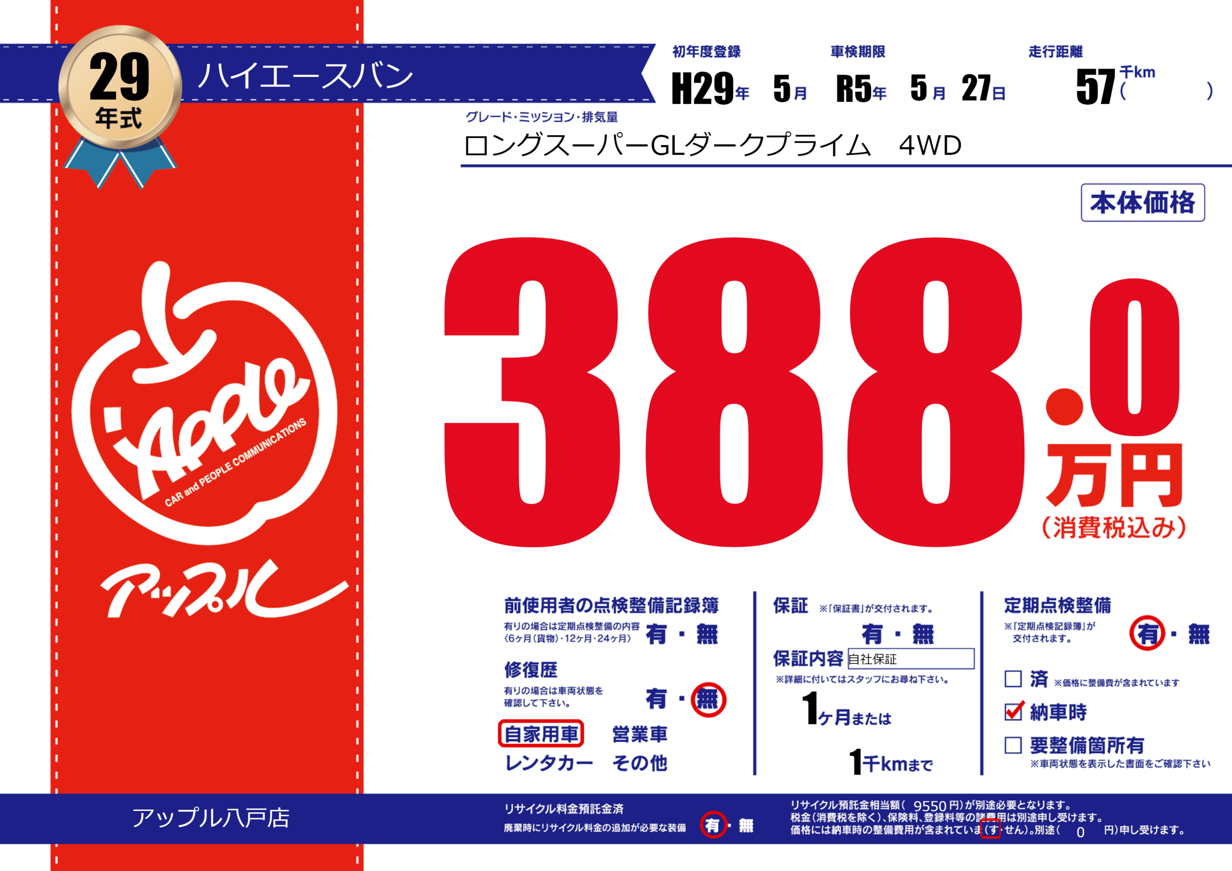 | 車名 | ハイエースバン | グレード ミッション 排気量 |