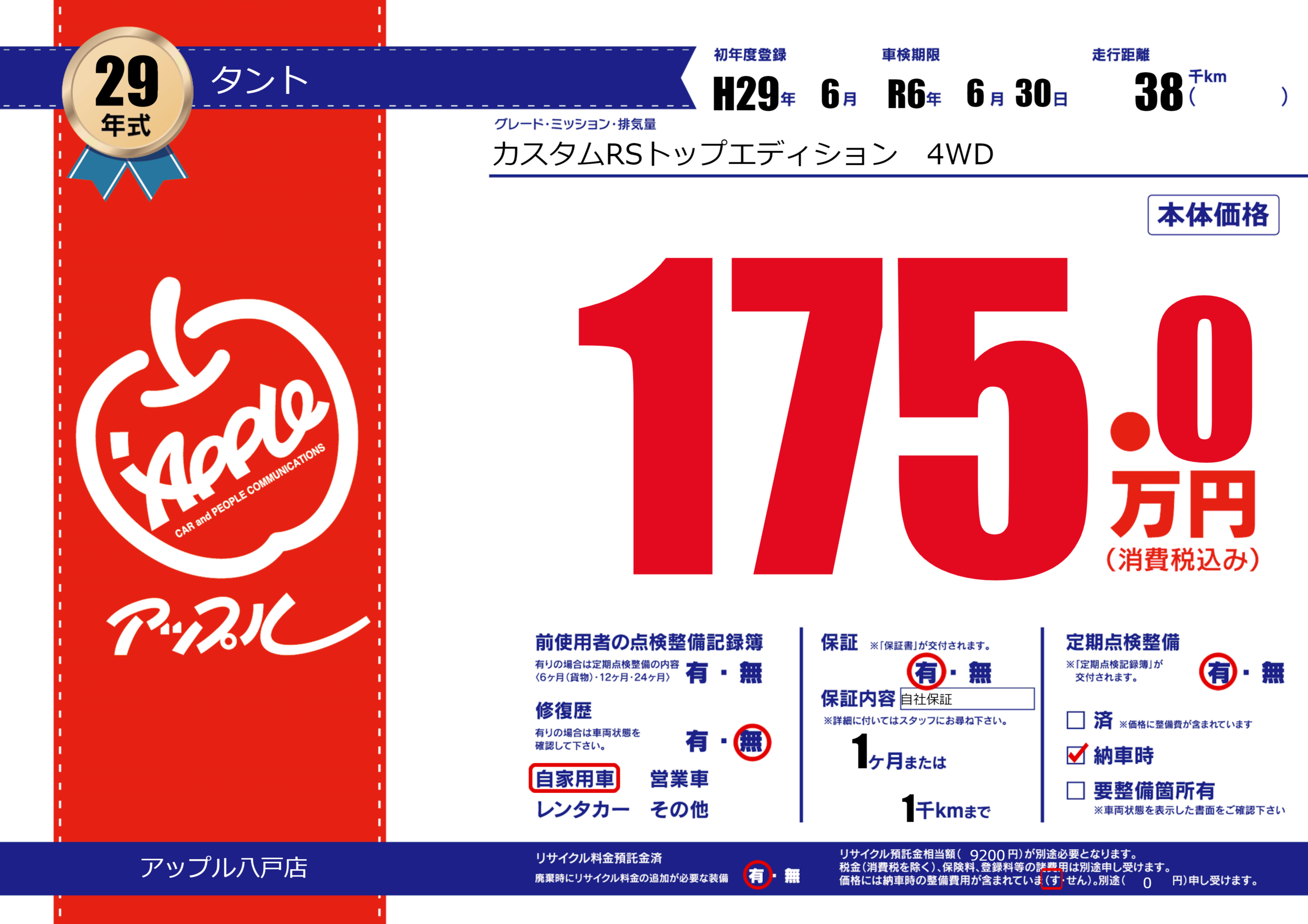 | 走行キロ | 3.8万km | 初年度登録 | H29年6月 |