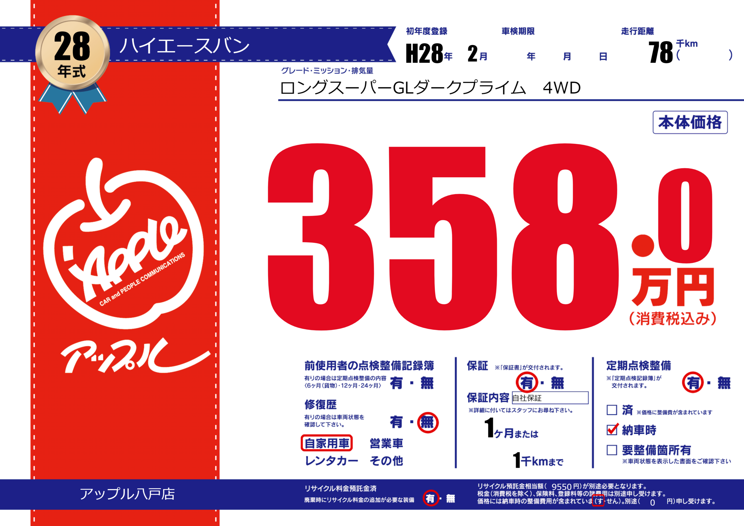 | 走行キロ | 7.8万km | ||
