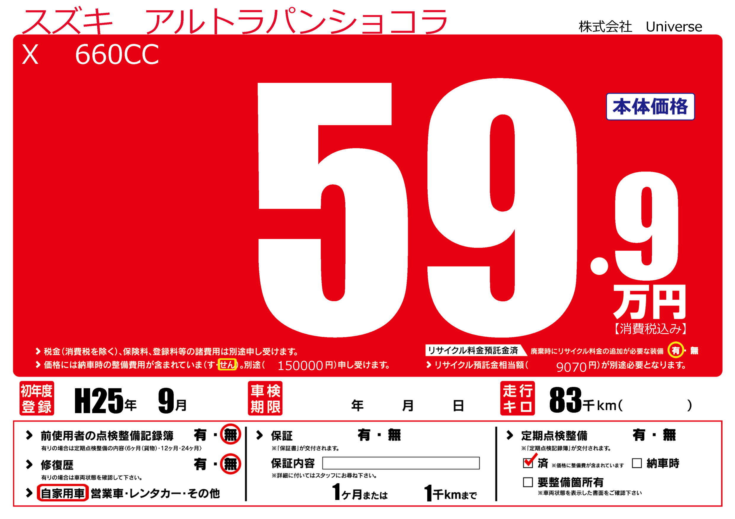 | 定期点検整備 | 定期点検整備済み | ||