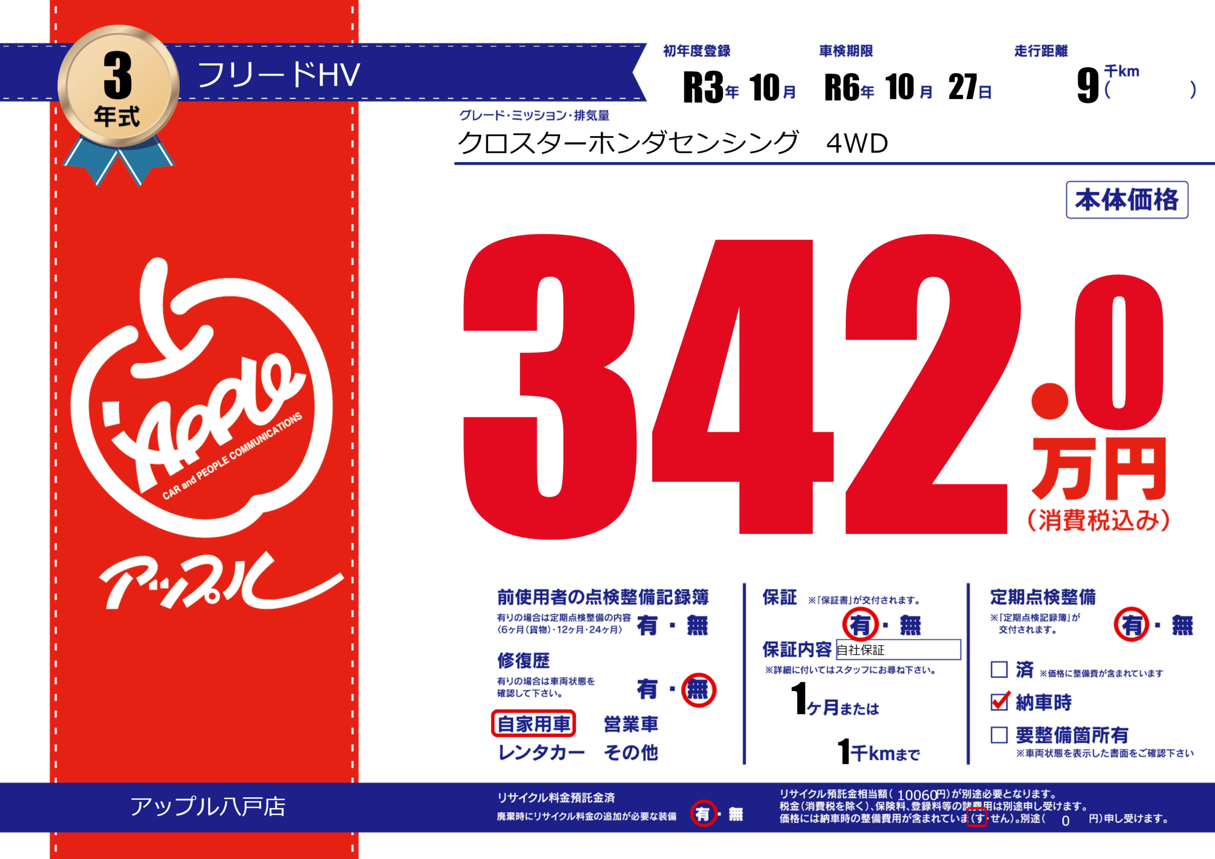| 走行キロ | 0.9万km | 初年度登録 | R3年10月 |