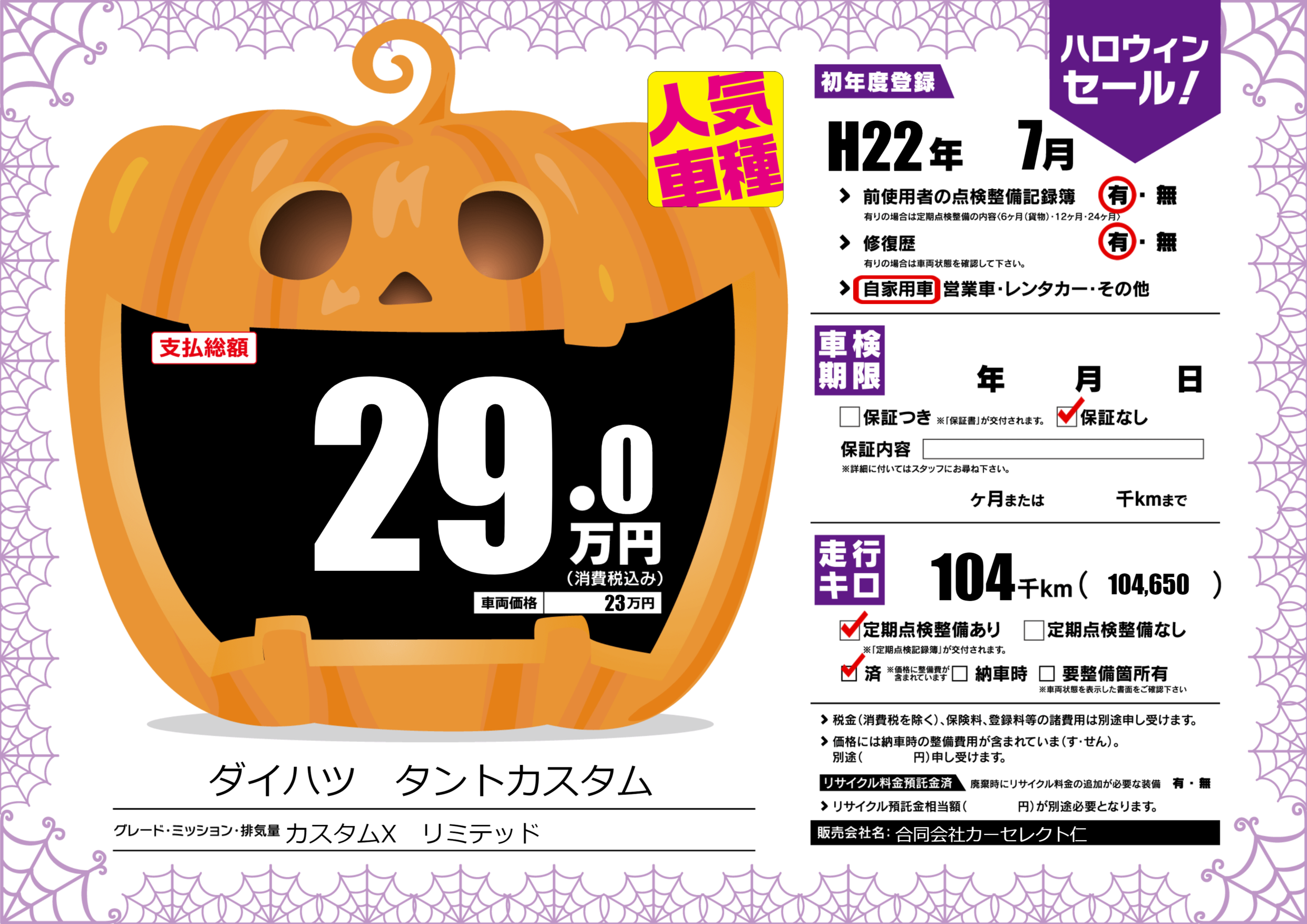 | 定期点検整備 | 定期点検整備あり 定期点検整備済み | ||