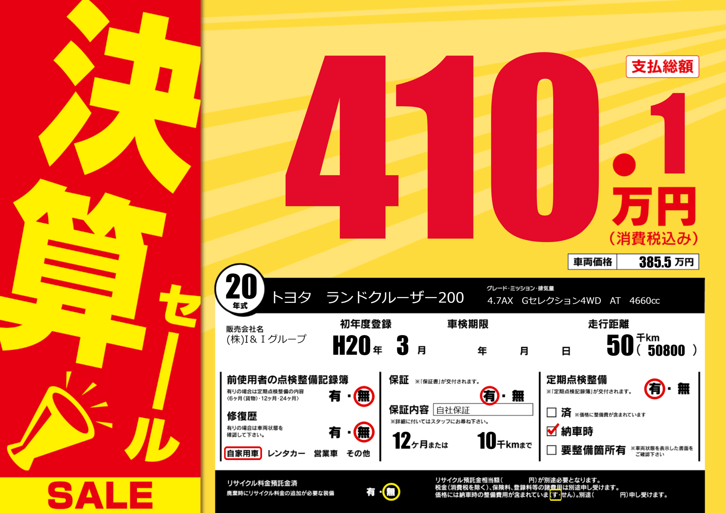 | 車名 | トヨタ ランドクルーザー200 | グレード ミッション 排気量 |