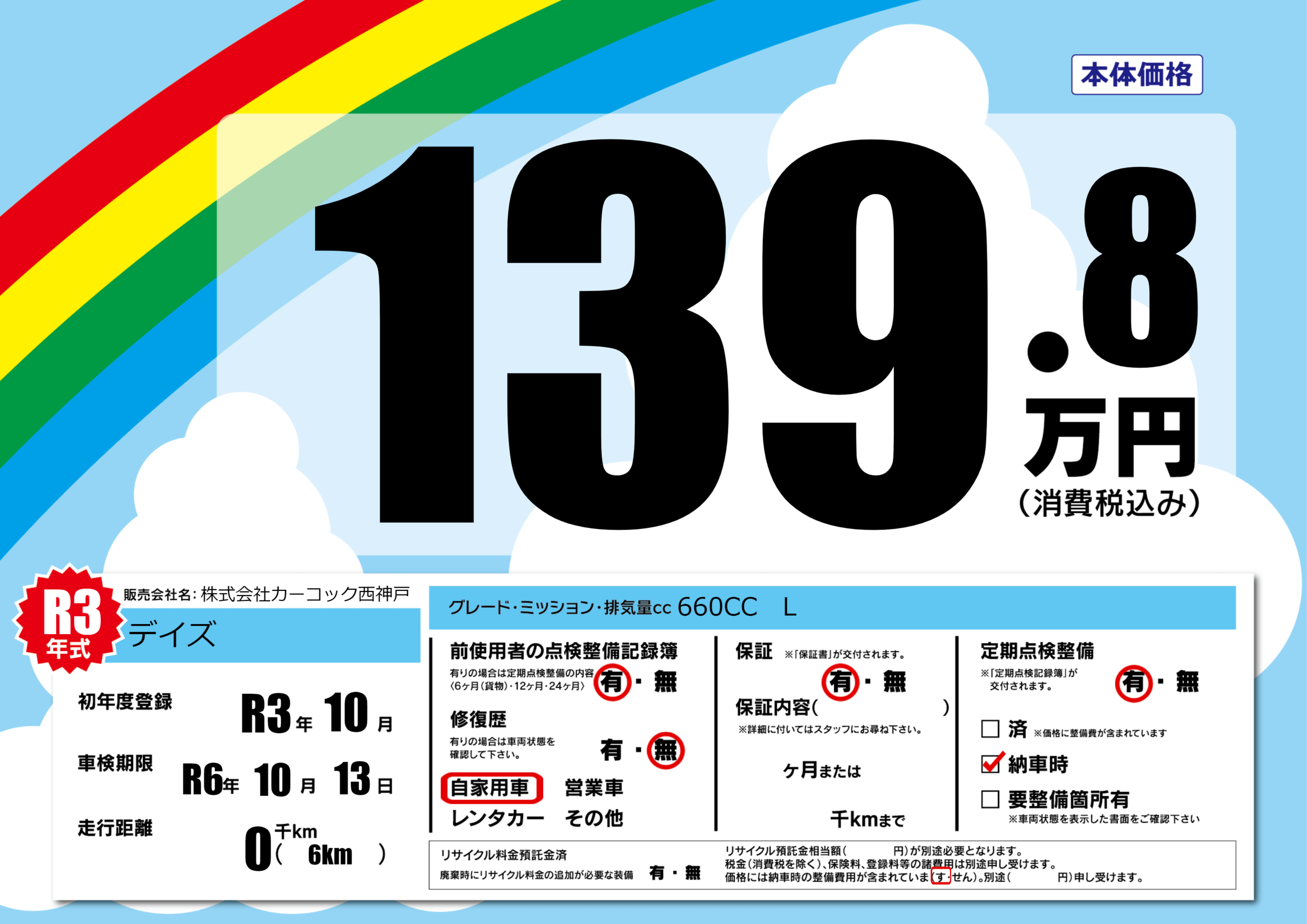 | 車名 | デイズ | グレード ミッション 排気量 |