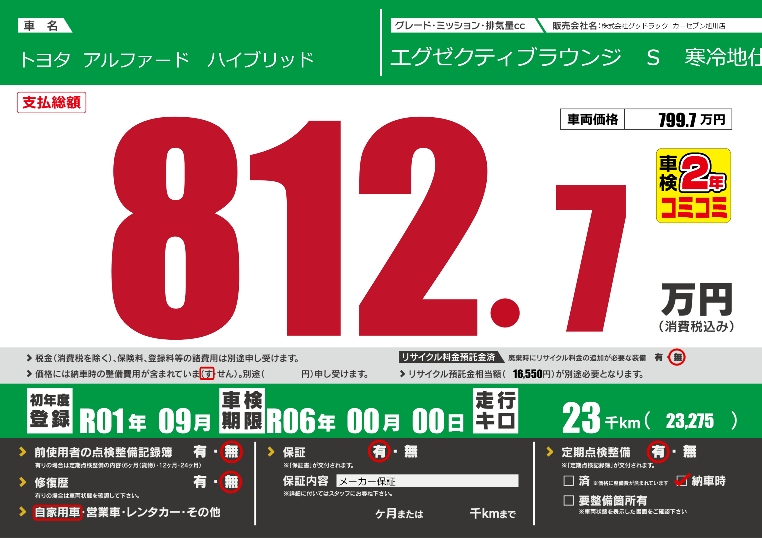 | 車名 | トヨタ アルファード ハイブリッド | グレード ミッション 排気量 |