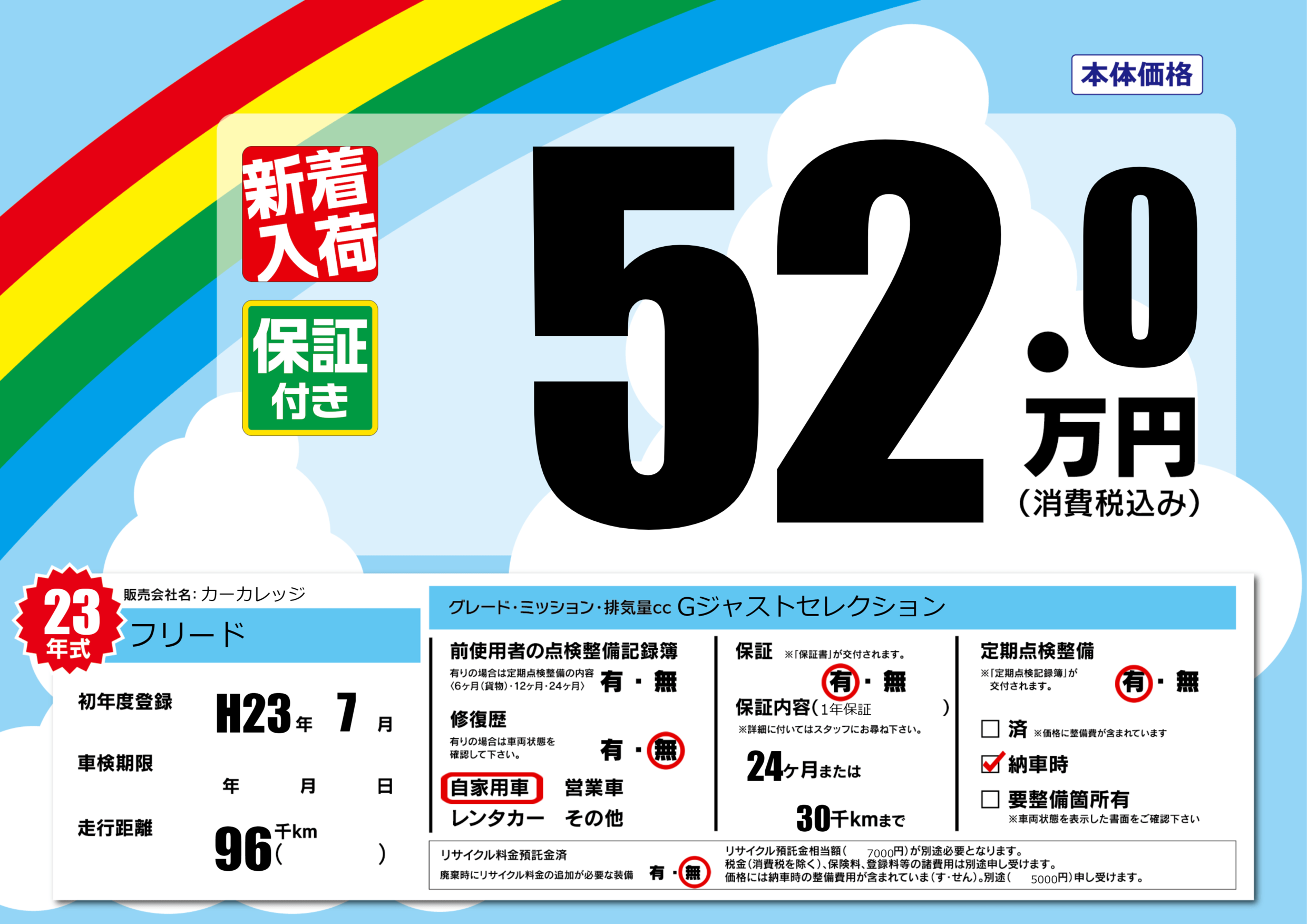 | 定期点検整備 | 定期点検整備あり 納車時あり | ||