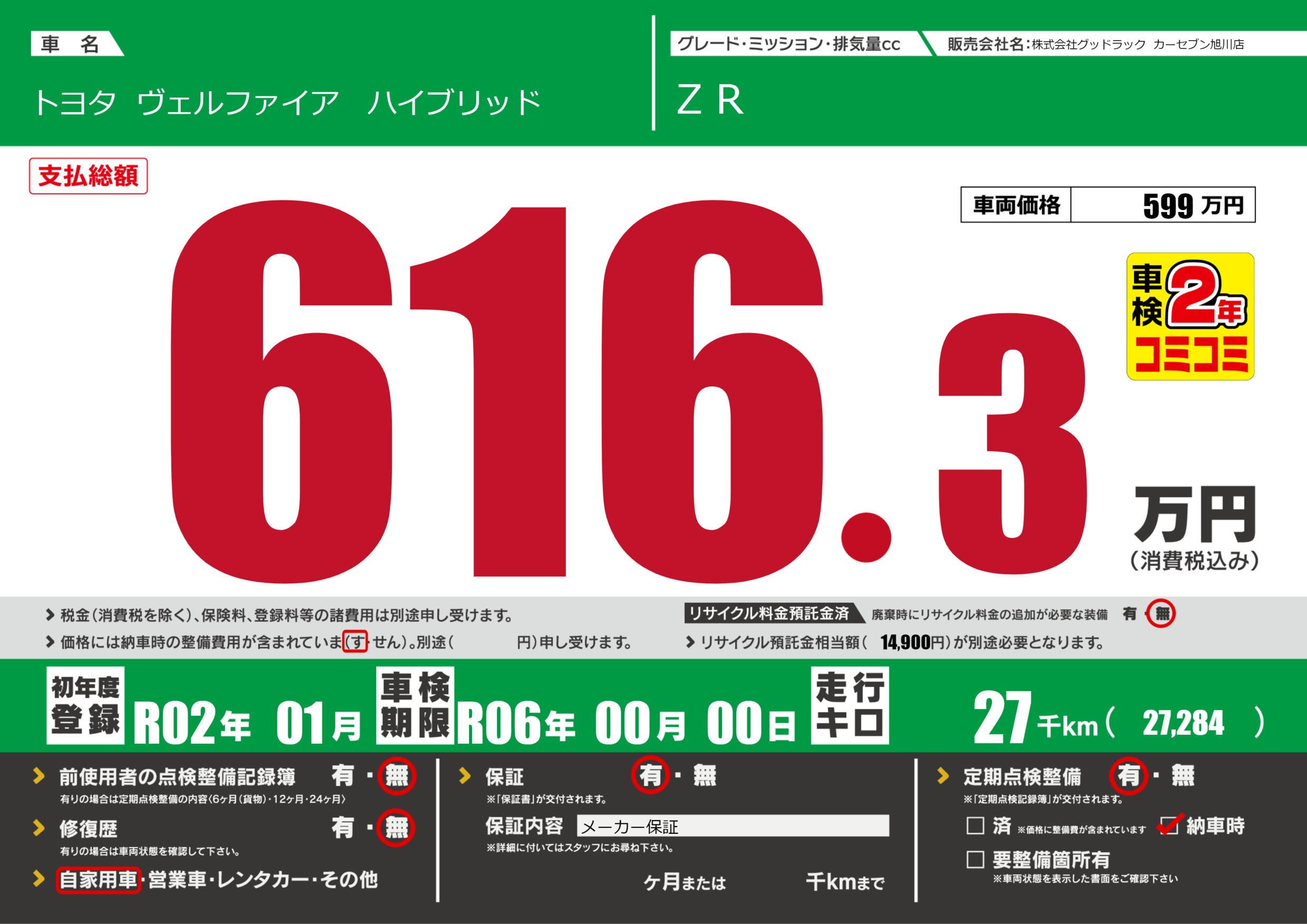 | 定期点検整備 | 定期点検整備あり 納車時あり | ||