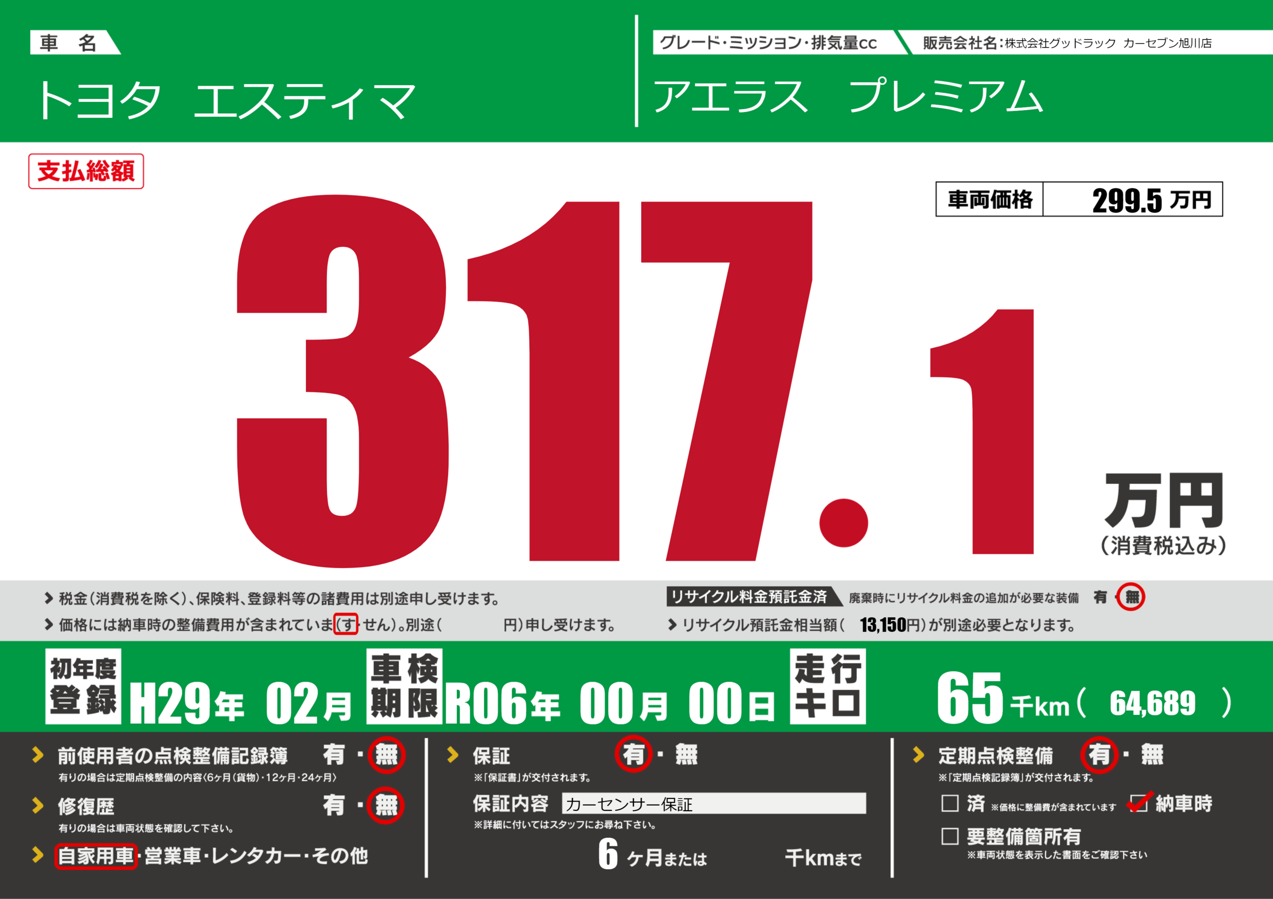 | 定期点検整備 | 定期点検整備あり 納車時あり | ||