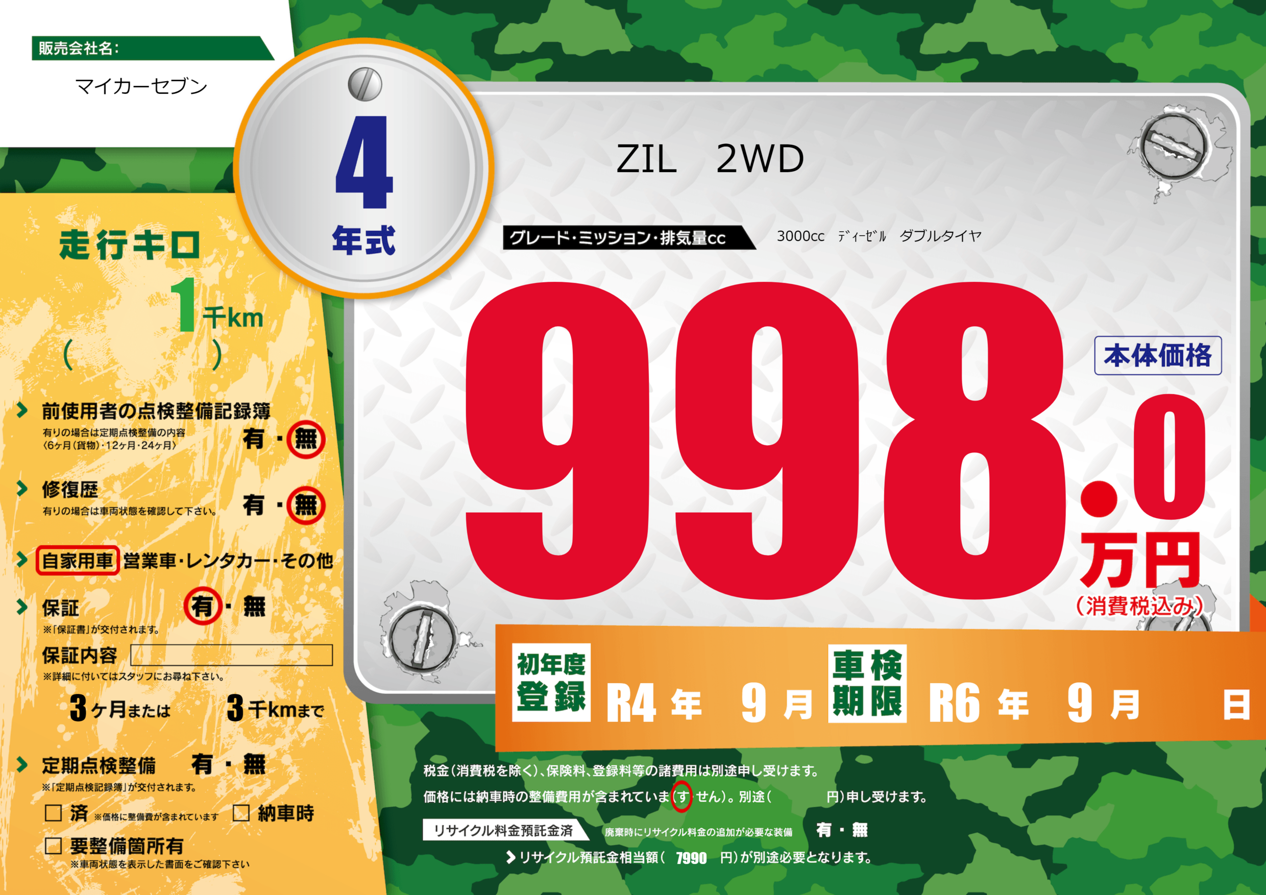 | 車名 | ZIL 2WD | グレード ミッション 排気量 |