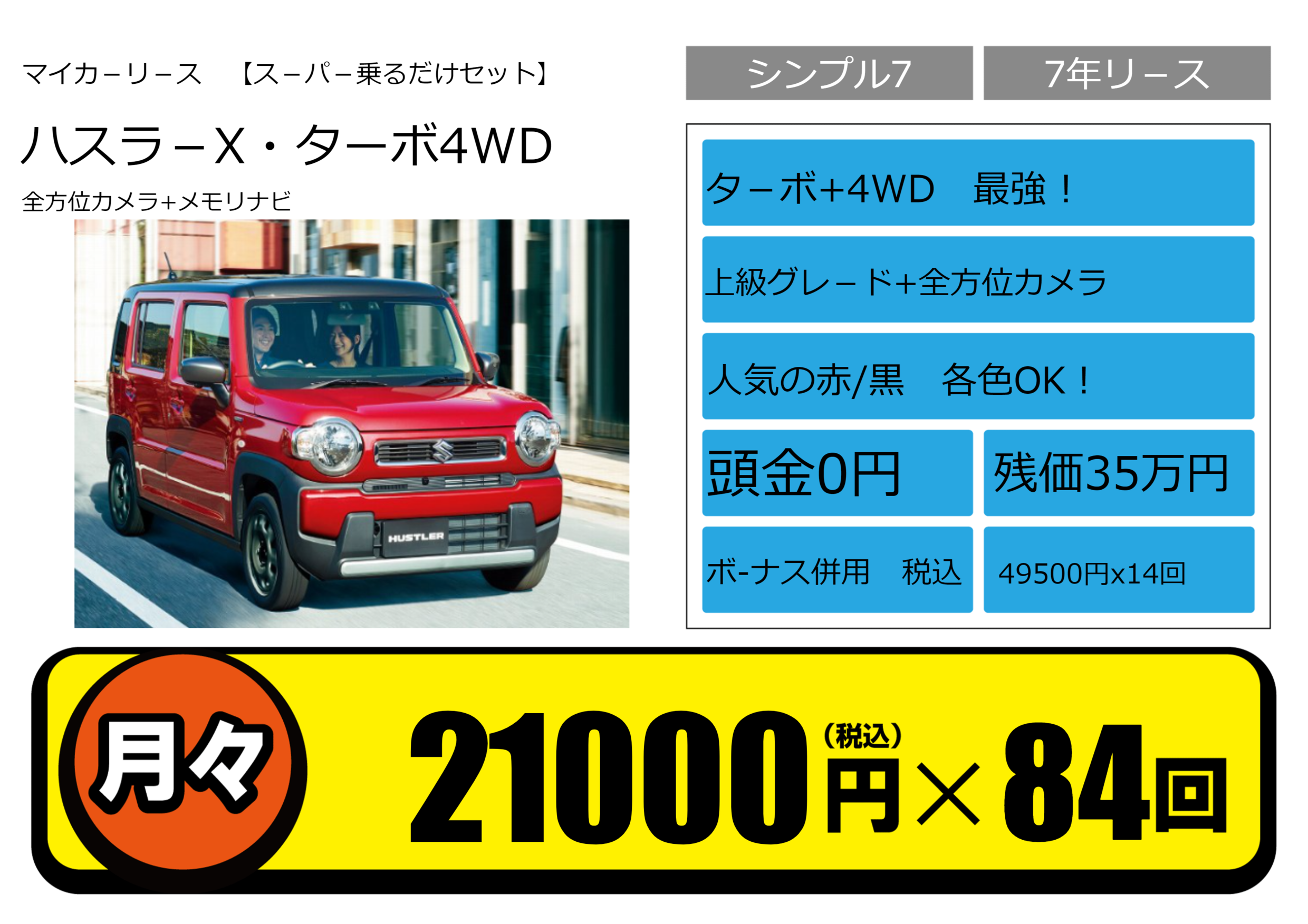 | 車名 | ハスラ-X・ターボ4WD | グレード ミッション 排気量 |