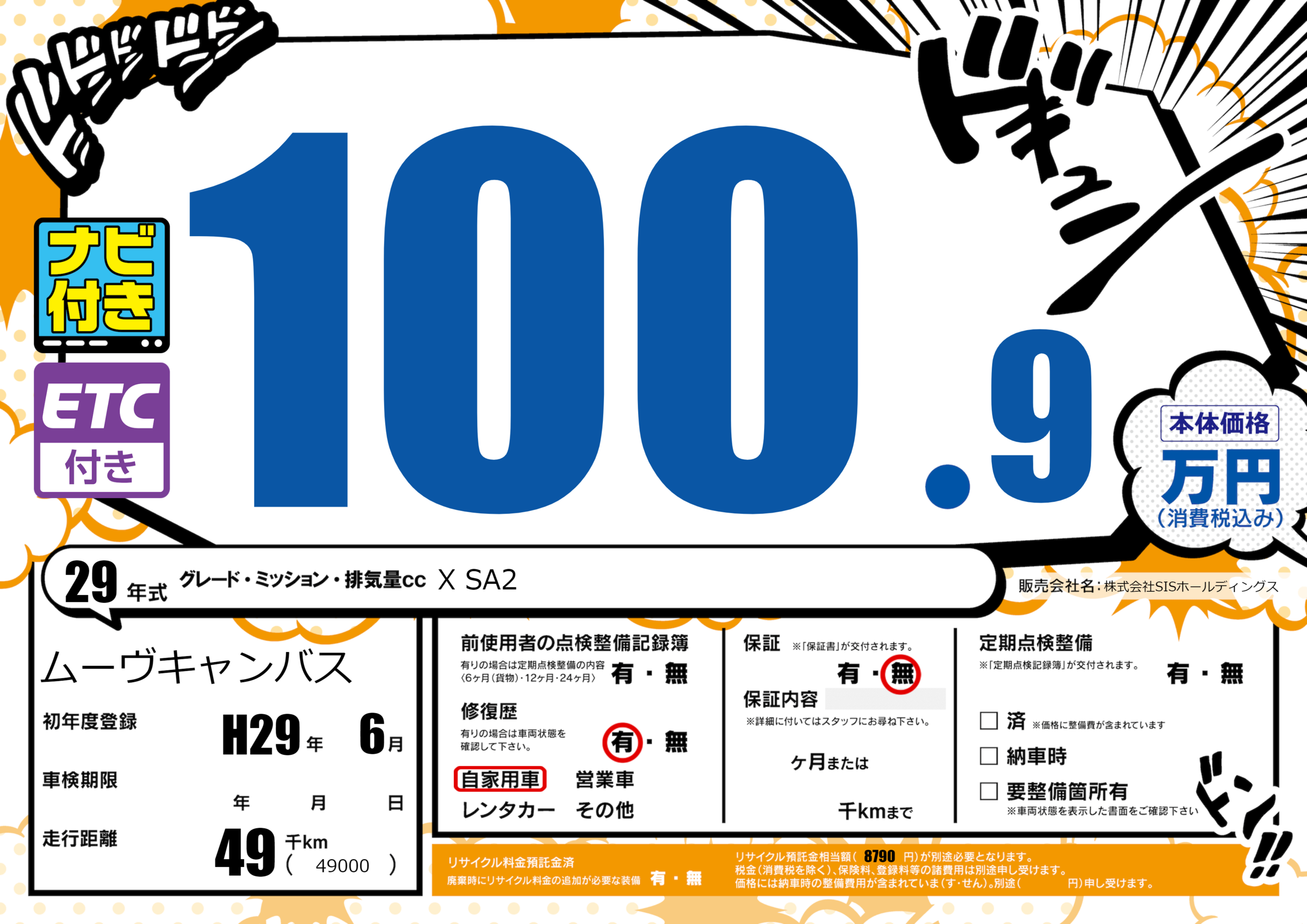 | 走行キロ | 4.9万km | 初年度登録 | H29年6月 |