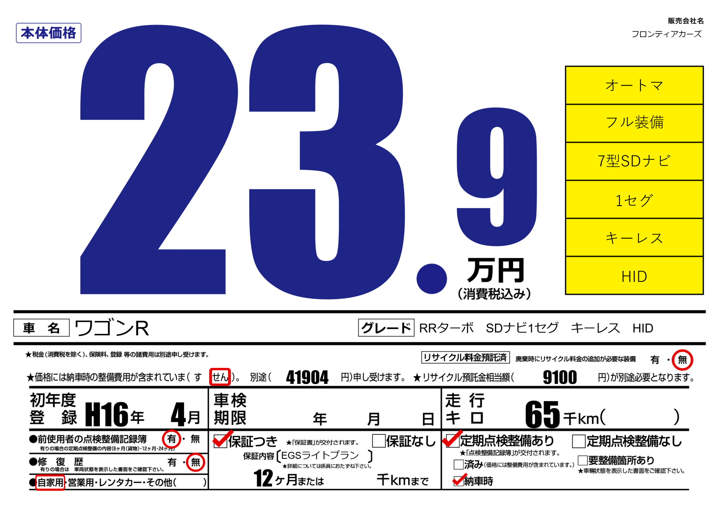 | 走行キロ | 6.5万km | 初年度登録 | H16年4月 |