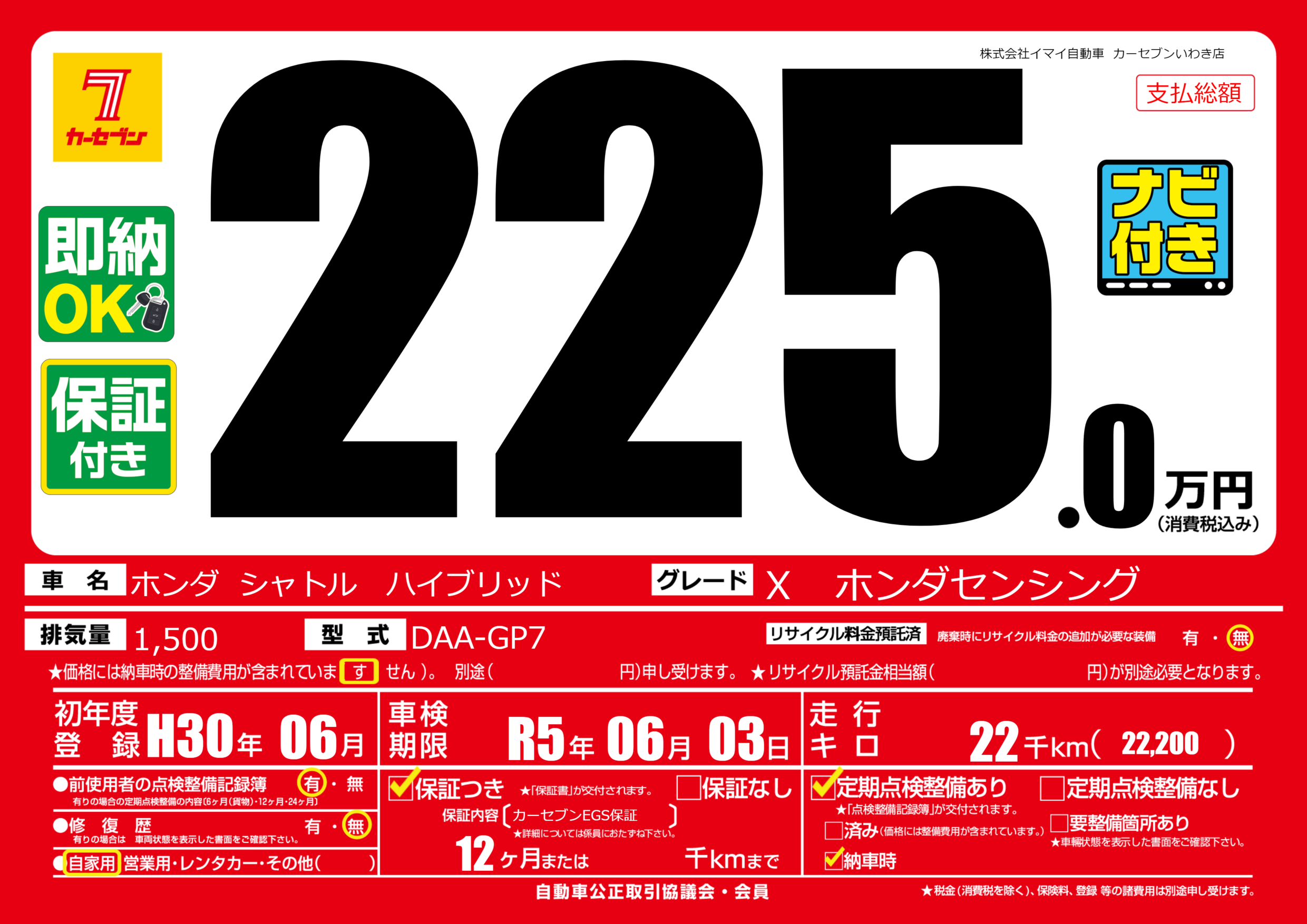 保証内容(カーセブンEGS保証) 12ヶ月または千km
