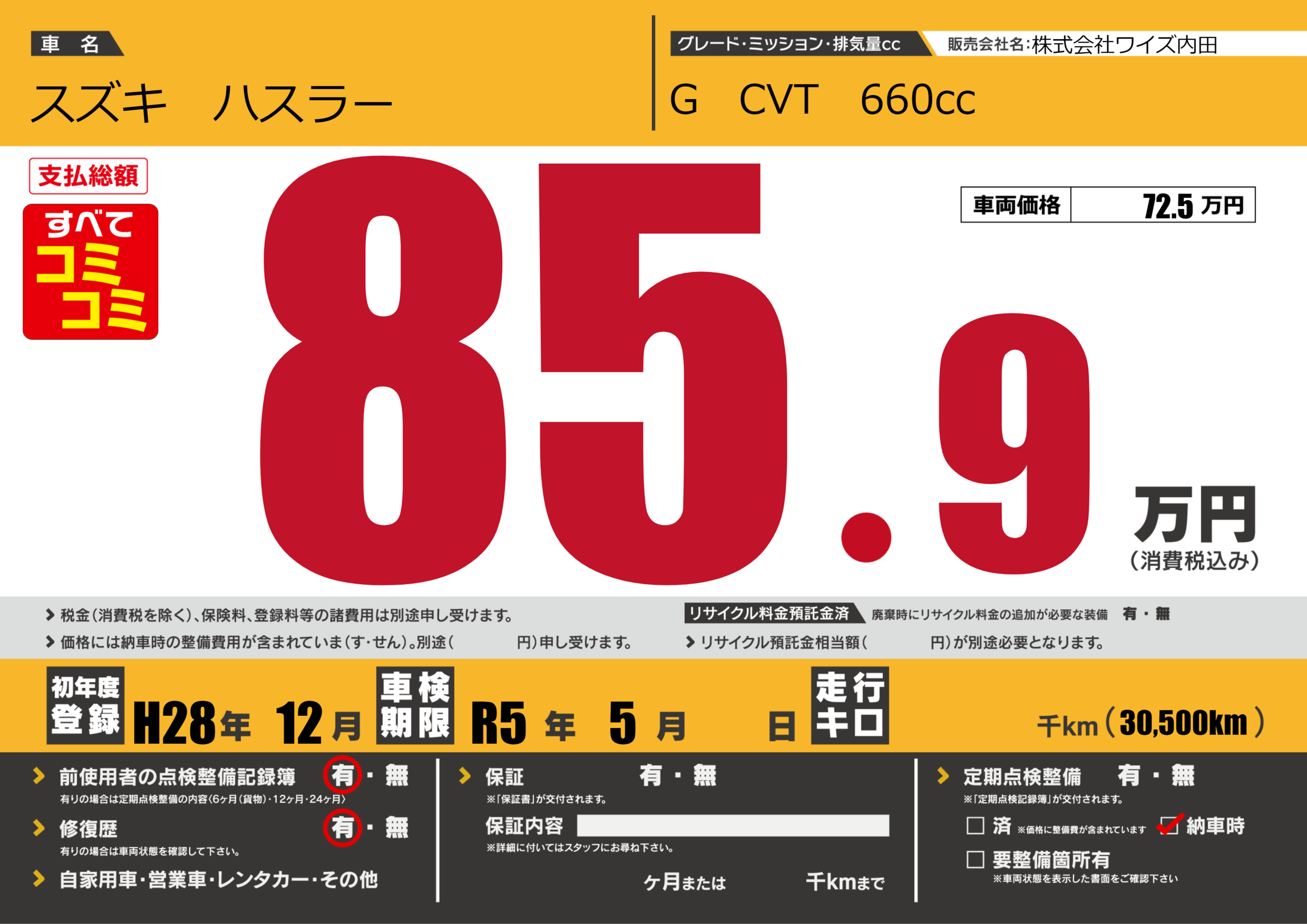 なし | 車検制限 | R5年5月---月 |