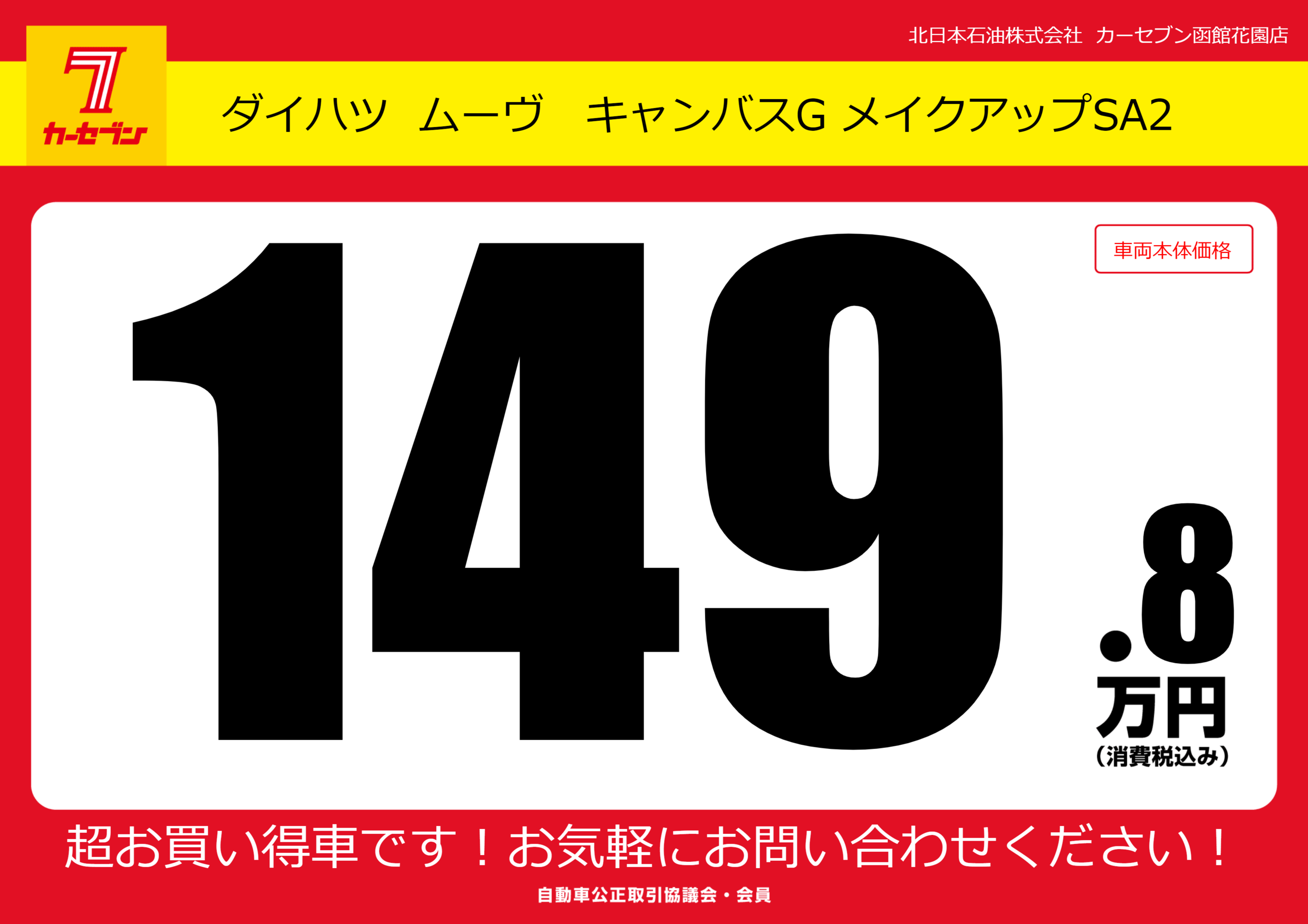 | 車名 | ダイハツ ムーヴ キャンバスG メイクアップSA2 | グレード ミッション 排気量 |