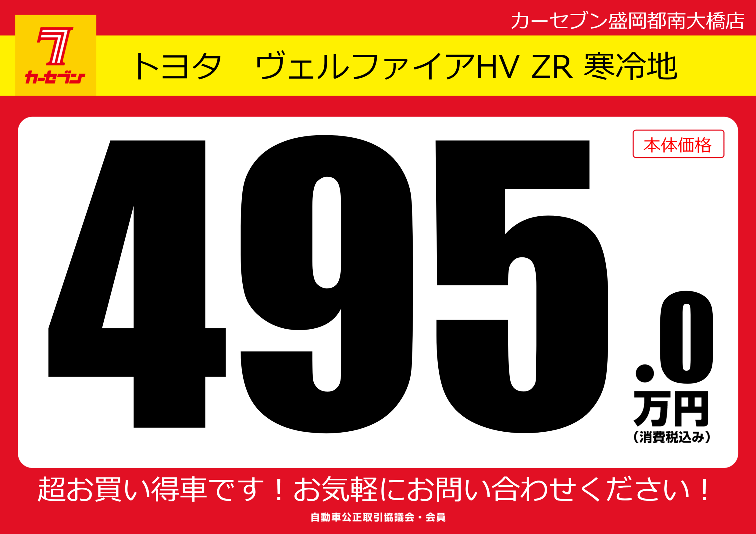 | 車名 | トヨタ ヴェルファイアHV ZR 寒冷地 | グレード ミッション 排気量 |