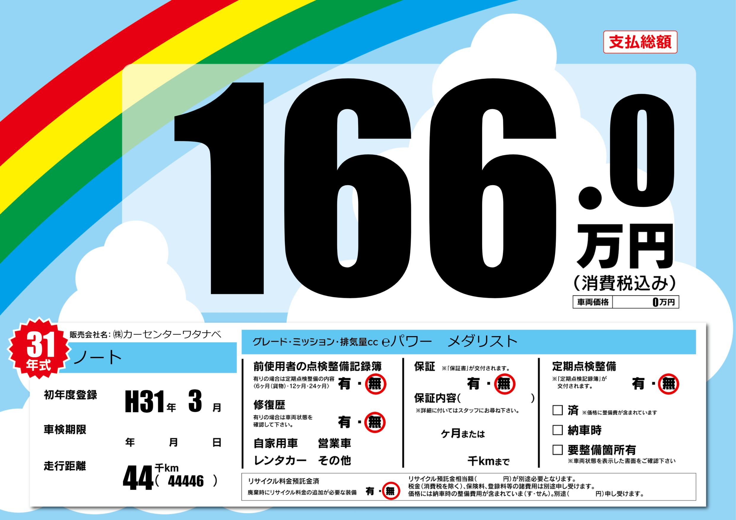 | 定期点検整備 | 定期点検整備なし | ||