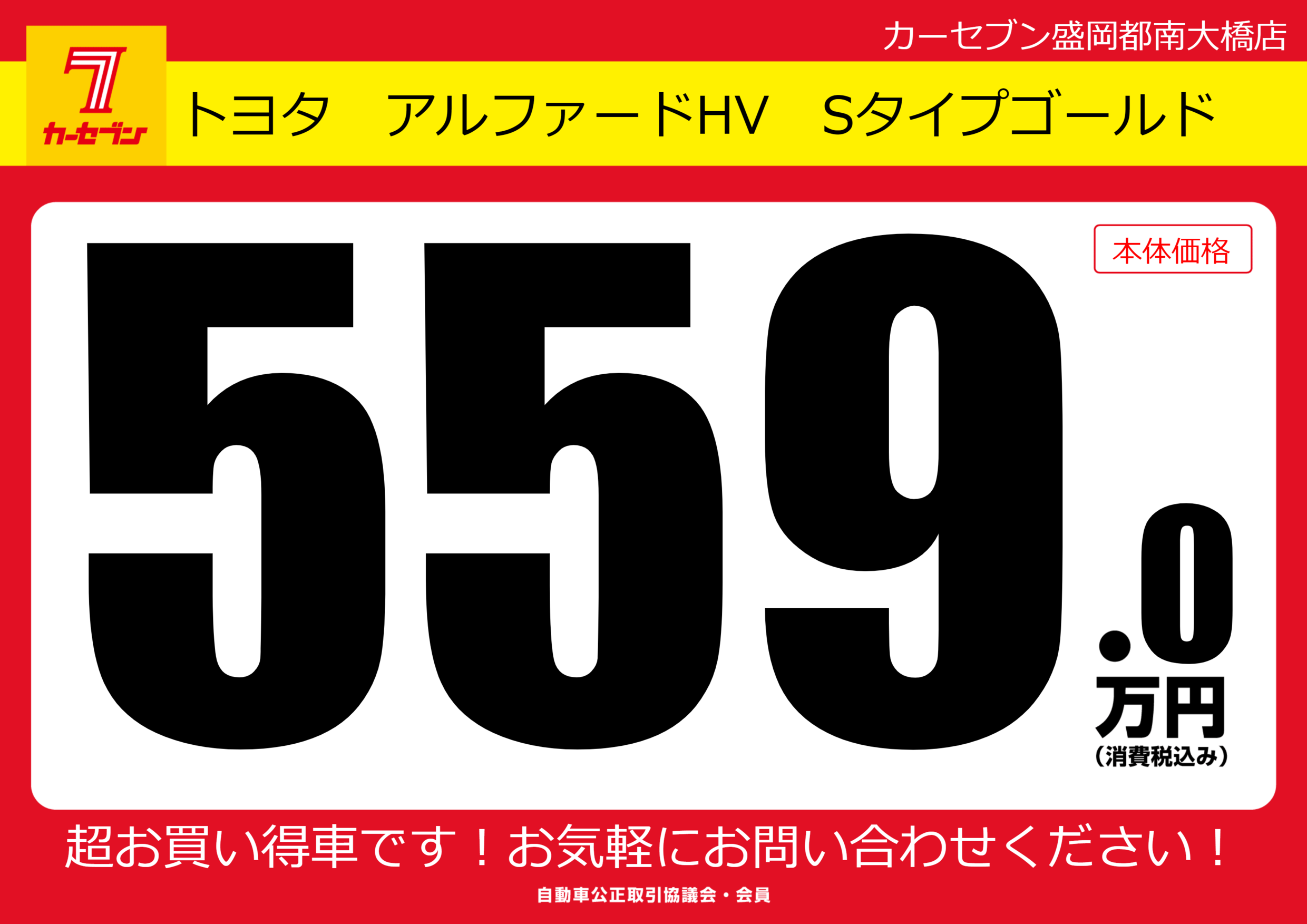 | 車名 | トヨタ アルファードHV Sタイプゴールド | グレード ミッション 排気量 |