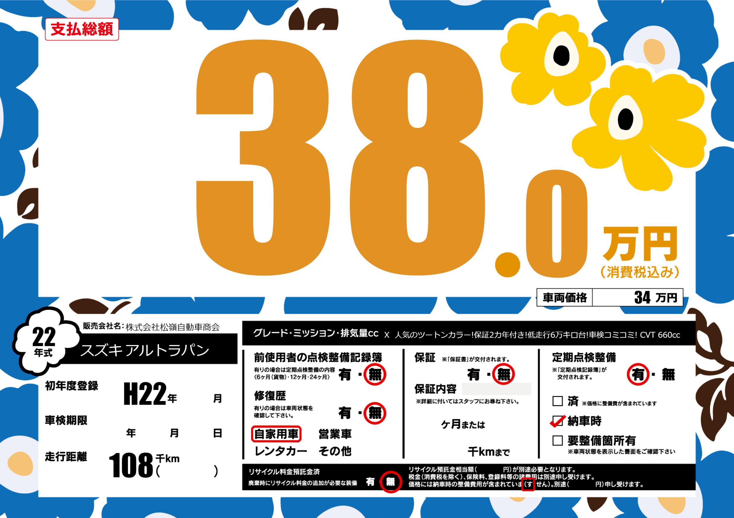 | 走行キロ | 10.8万km | ||