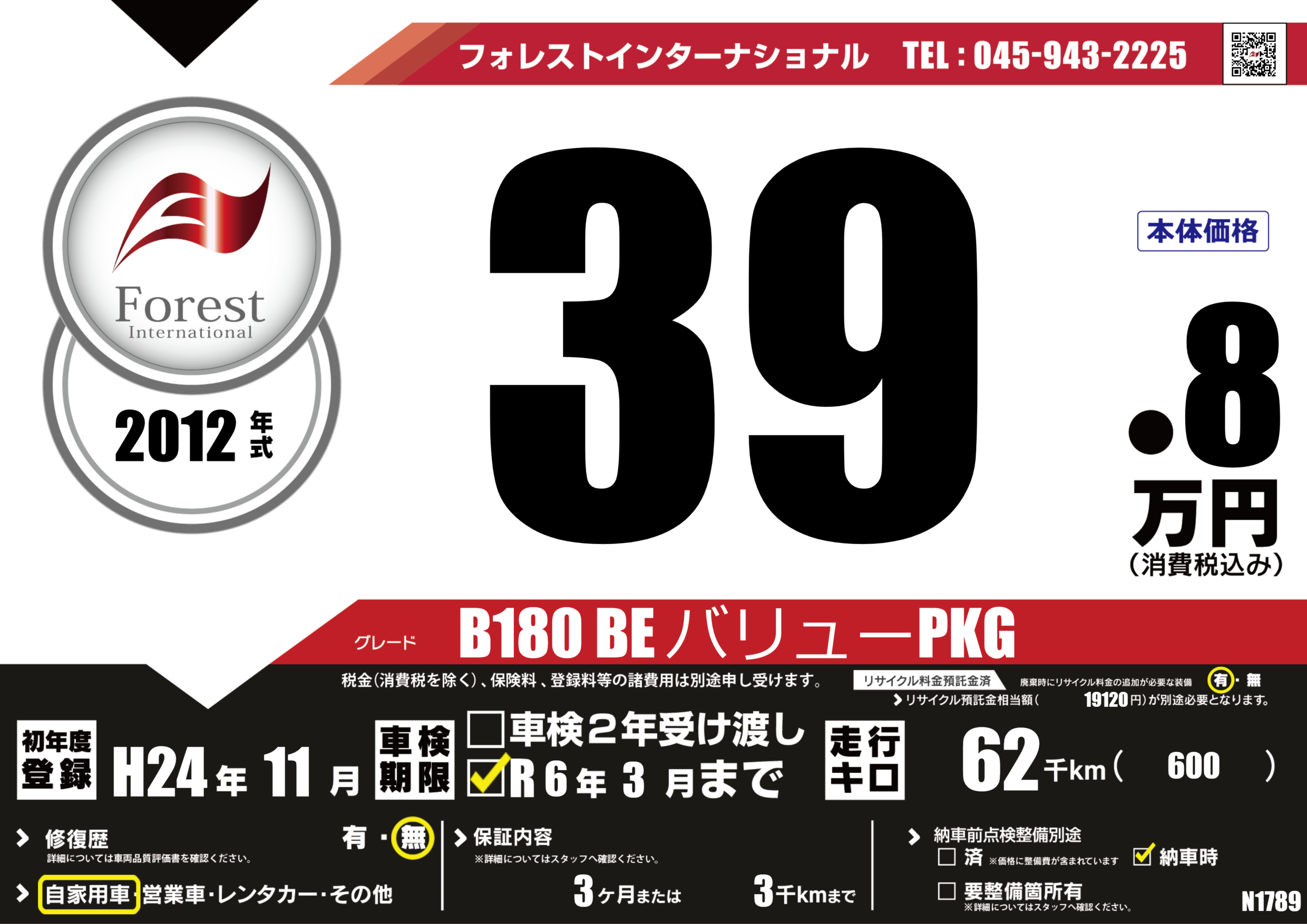 B180 BE バリューPKG |