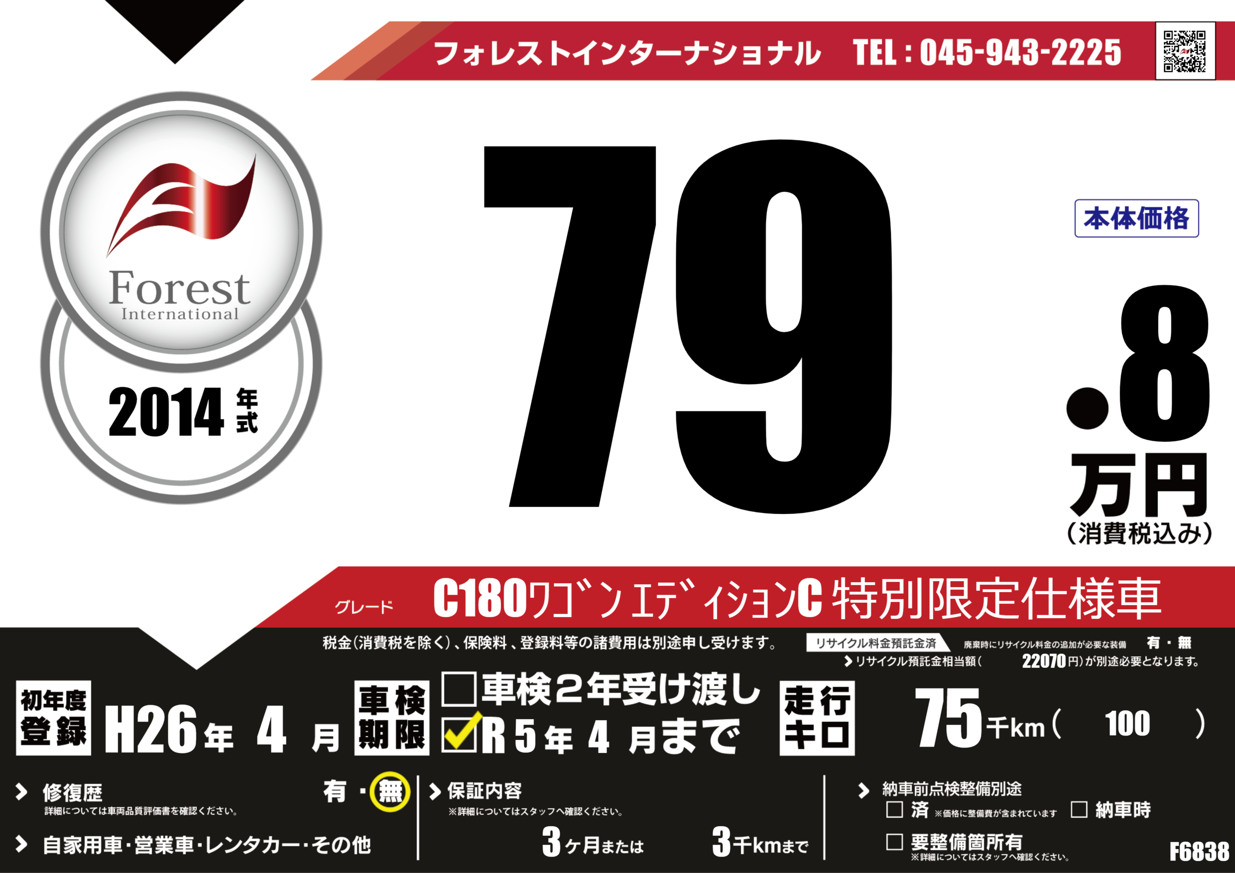 | 走行キロ | 7.5万km | 初年度登録 | H26年4月 |