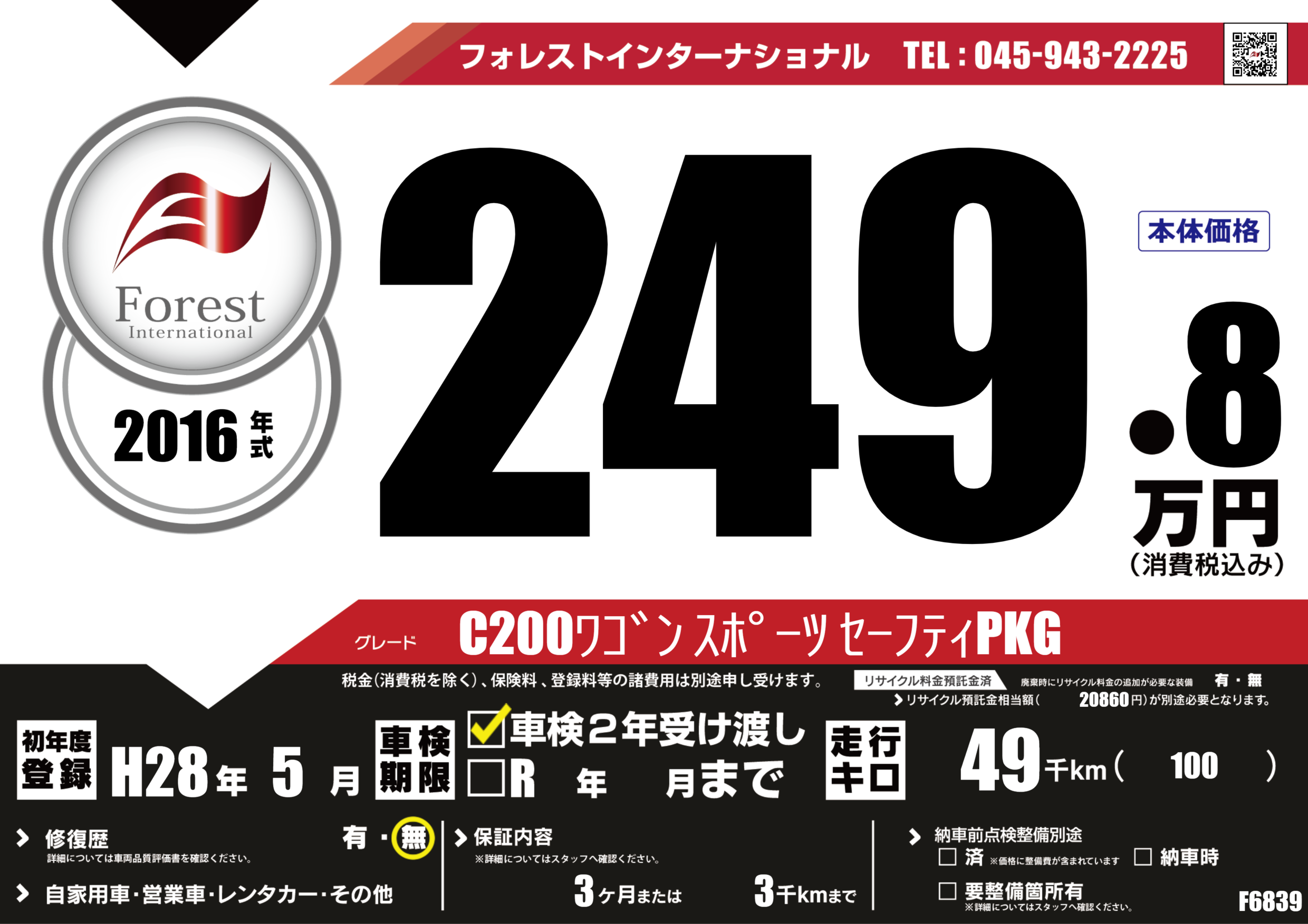 | 走行キロ | 4.9万km | 初年度登録 | H28年5月 |