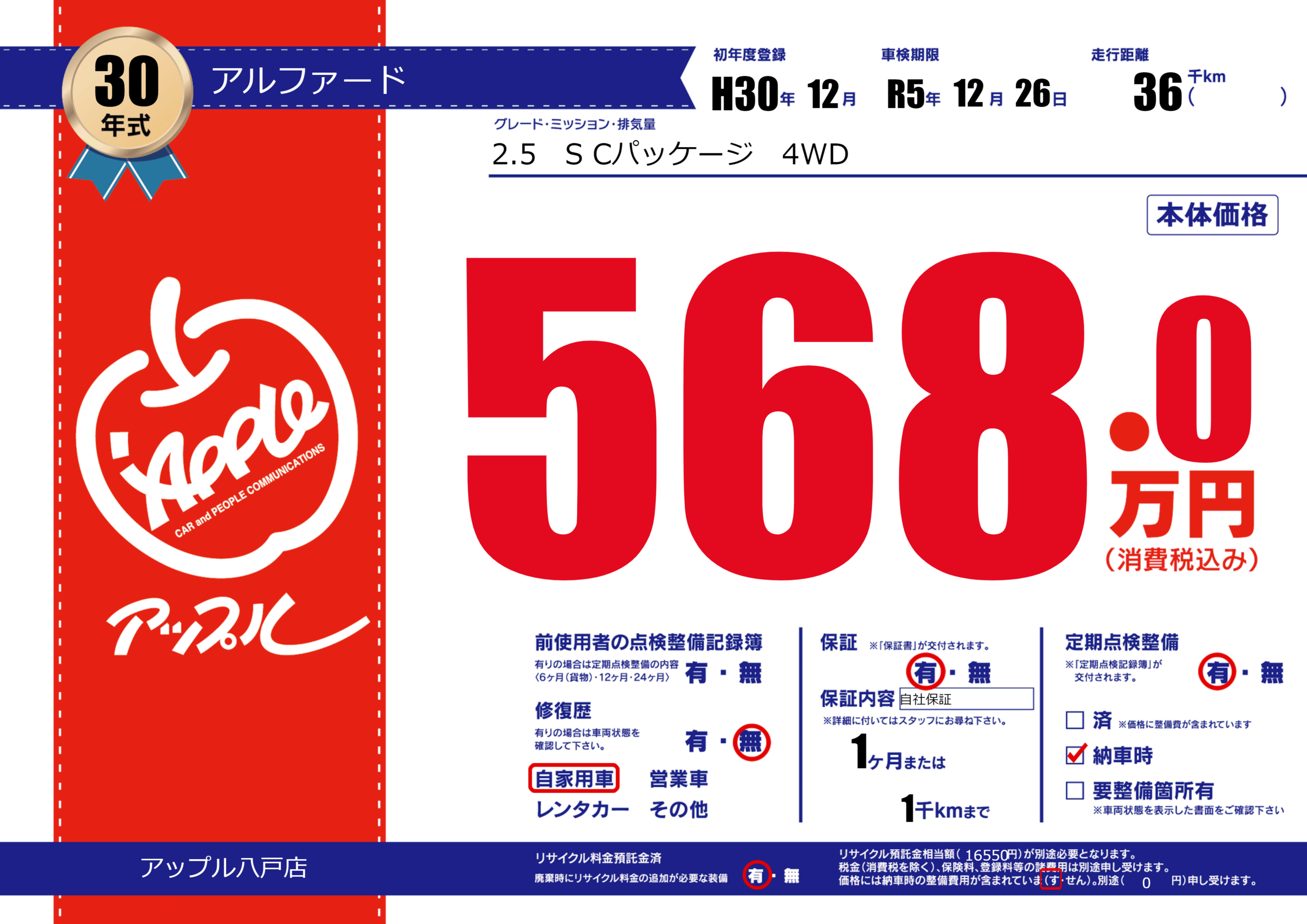 | 初年度登録 | H30年12月 | ||