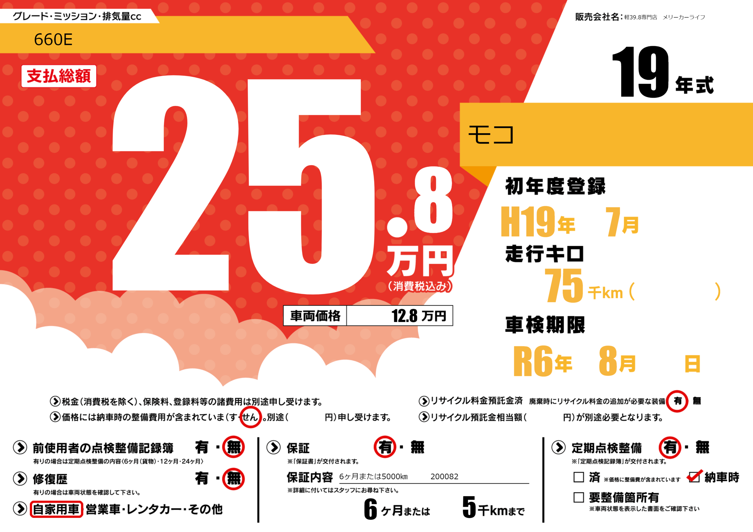 なし | 車検制限 | R6年8月---月 |