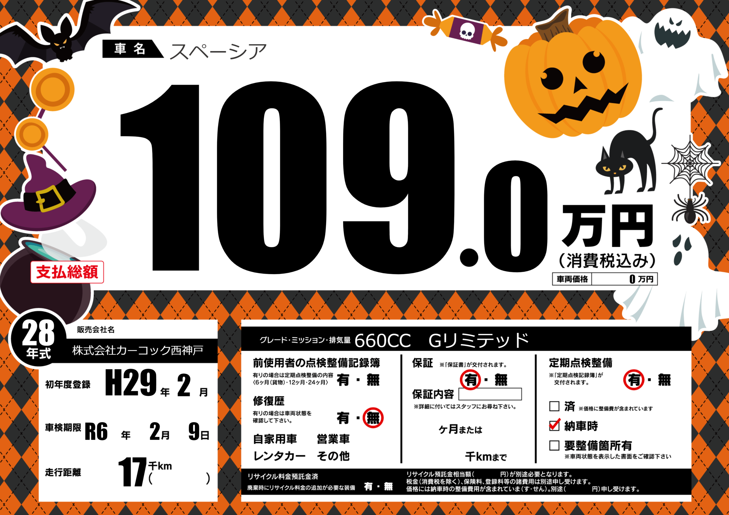 | 定期点検整備 | 定期点検整備あり 納車時あり | ||