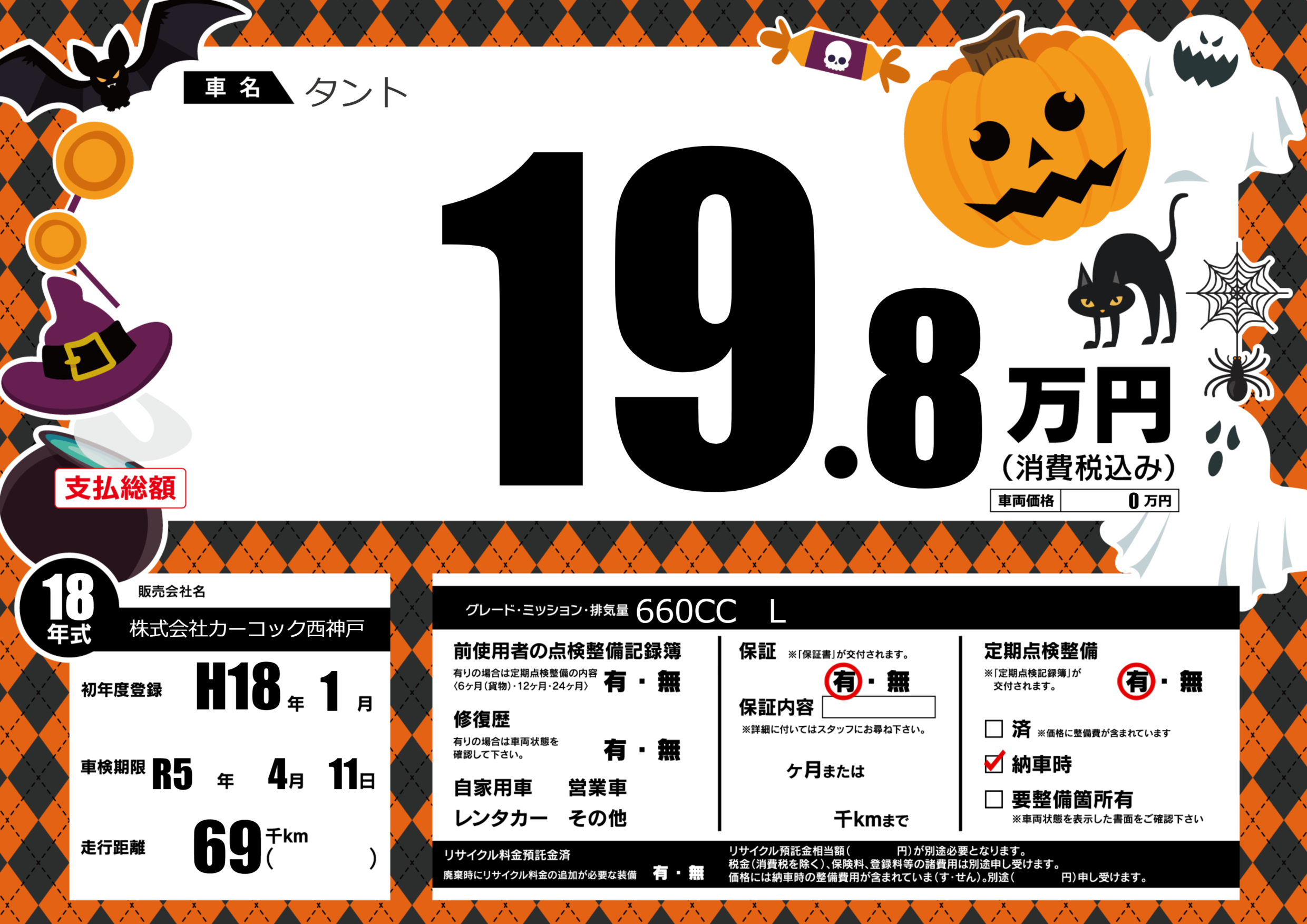 | 定期点検整備 | 定期点検整備あり 納車時あり | ||
