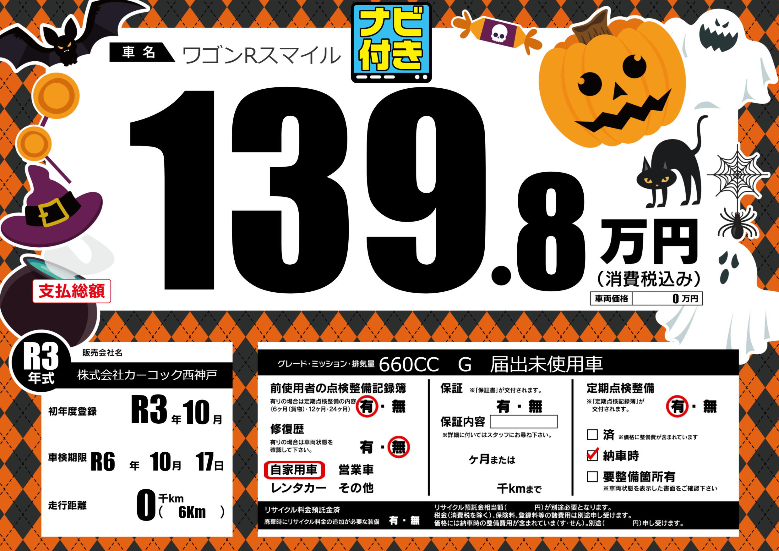 | 走行キロ | - | 初年度登録 | R3年10月 |