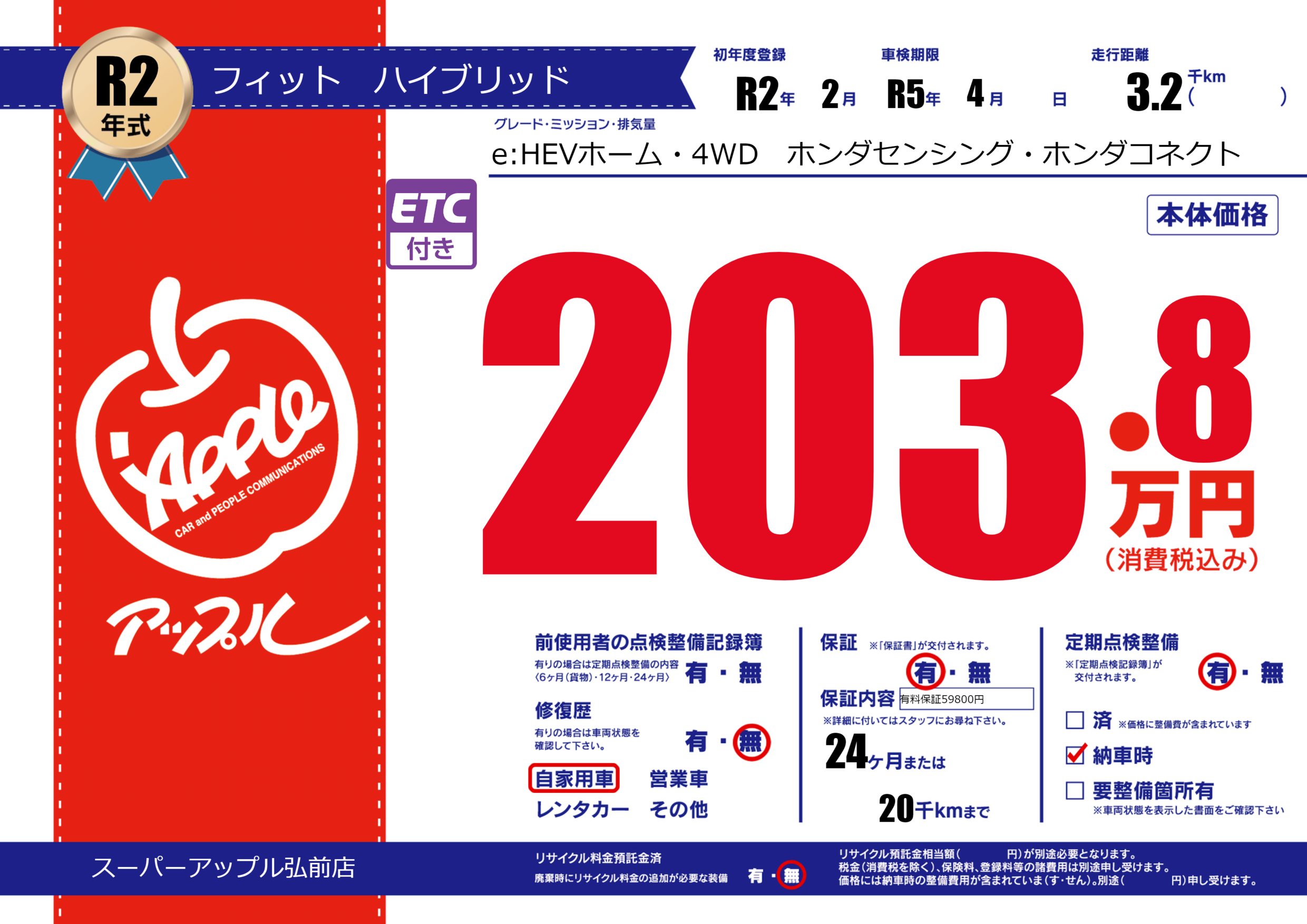 | 走行キロ | 0.3万km | 初年度登録 | R2年2月 |