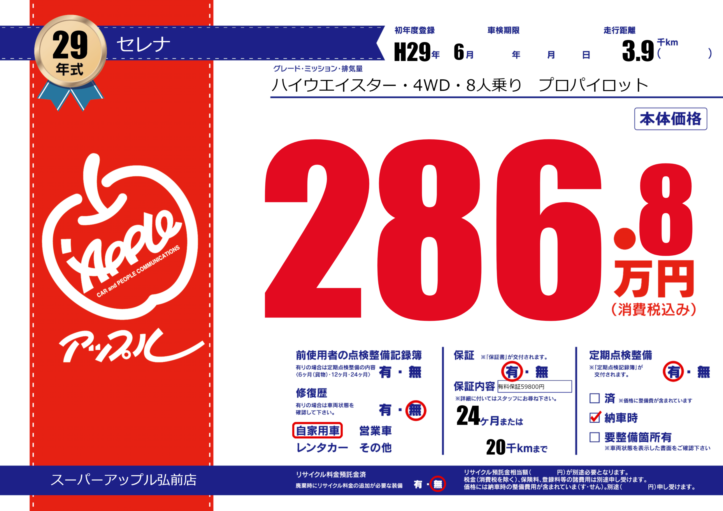 | 走行キロ | 0.3万km | 初年度登録 | H29年6月 |