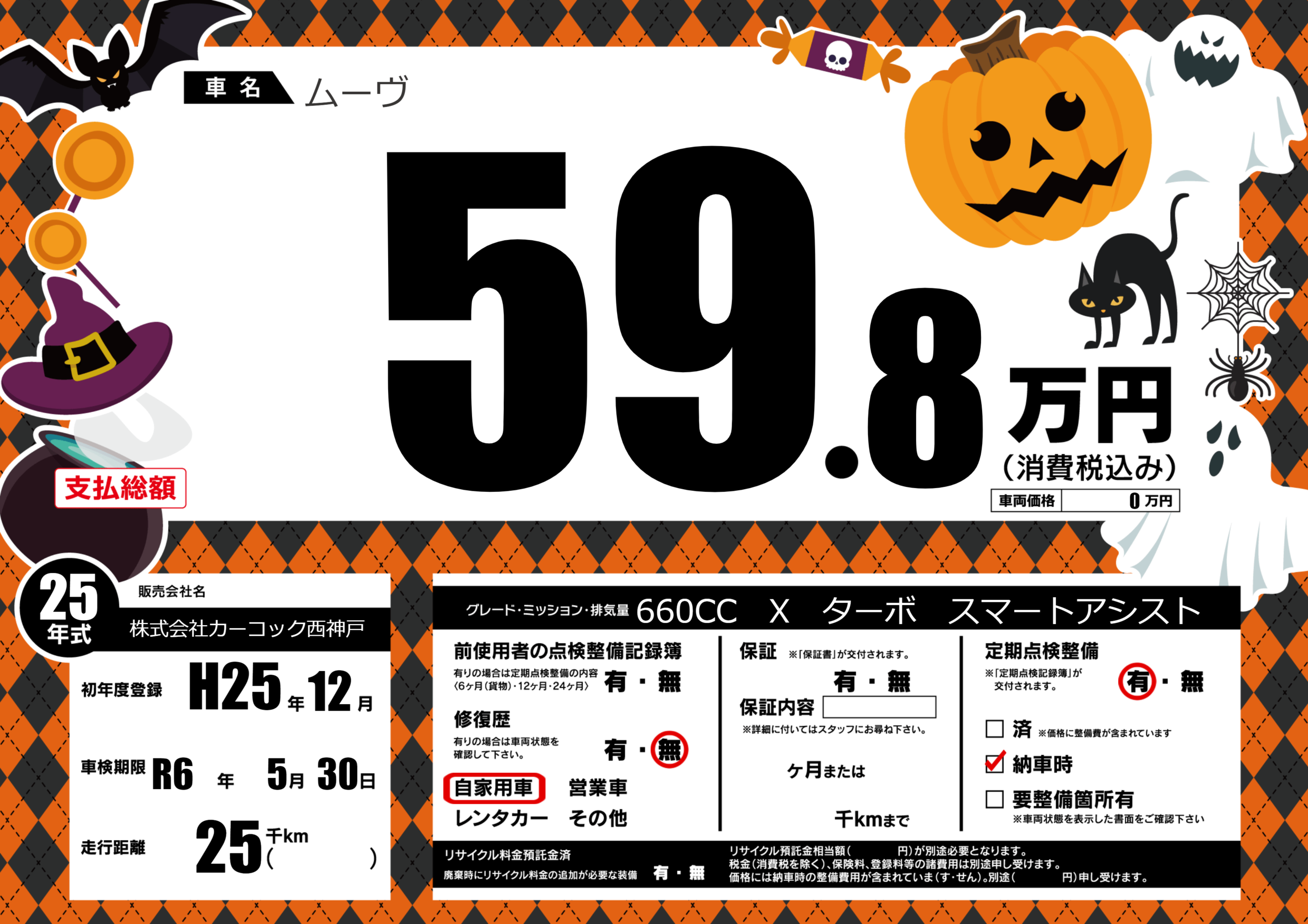 | 定期点検整備 | 定期点検整備あり 納車時あり | ||