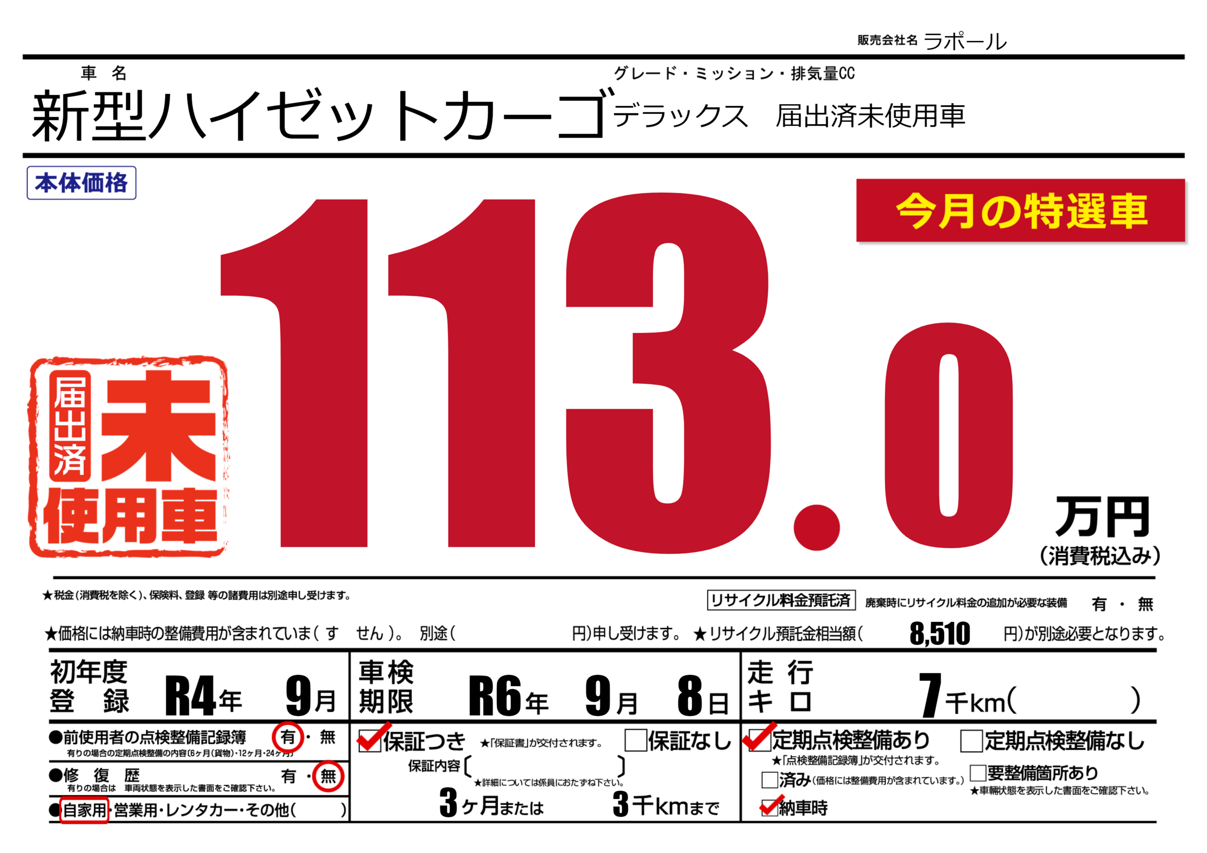 保証付き 保証内容(---) 3ヶ月または(3)千kmまで |