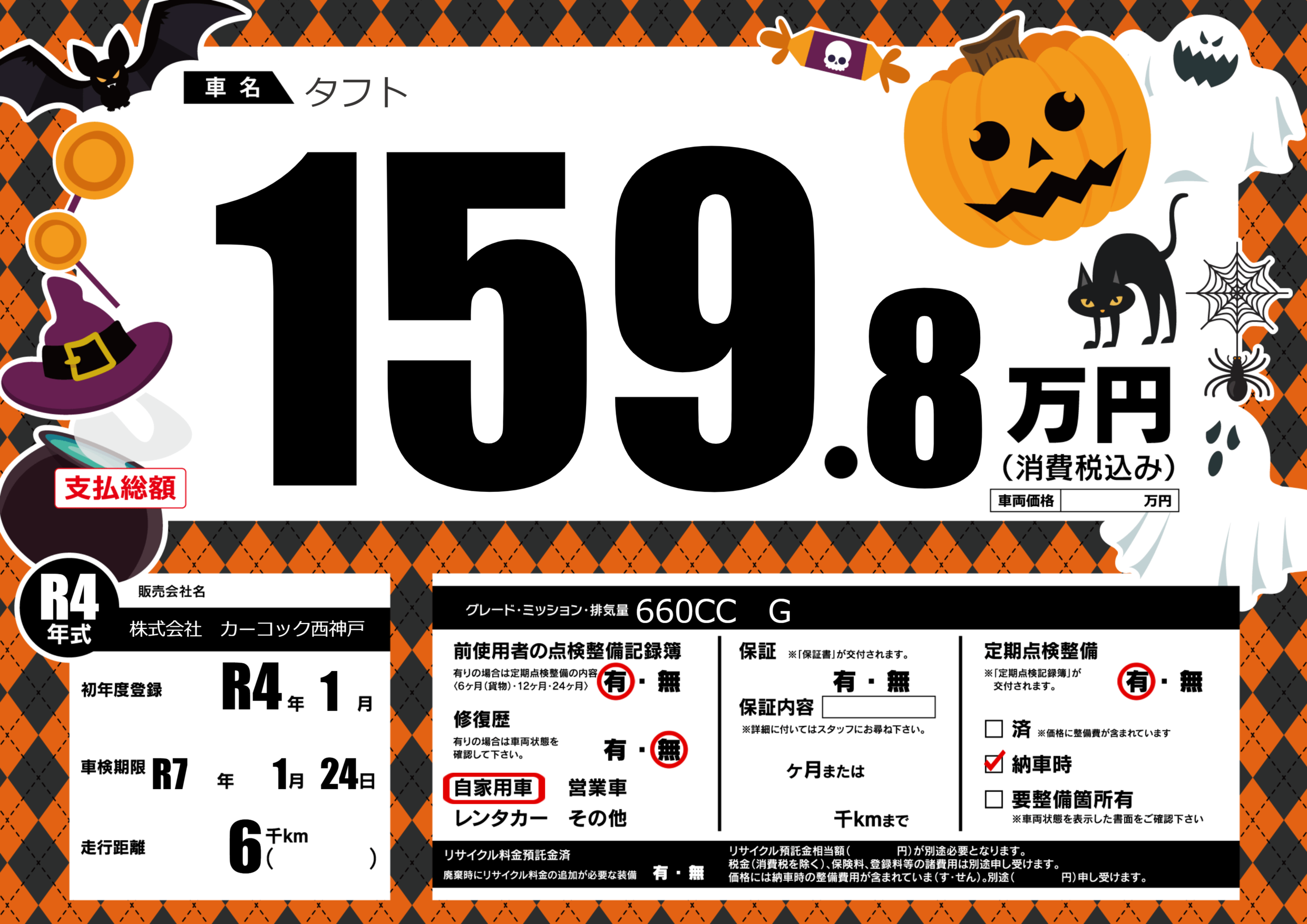 | 走行キロ | 0.6万km | 初年度登録 | R4年1月 |