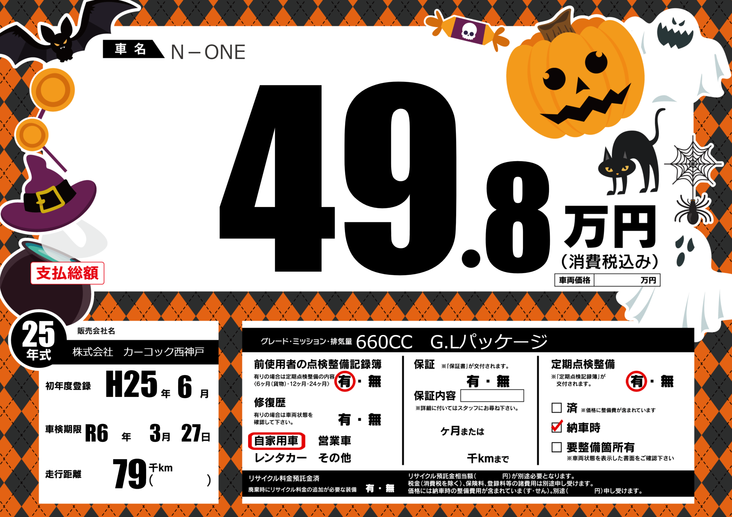 | 車名 | N-ONE | グレード ミッション 排気量 |